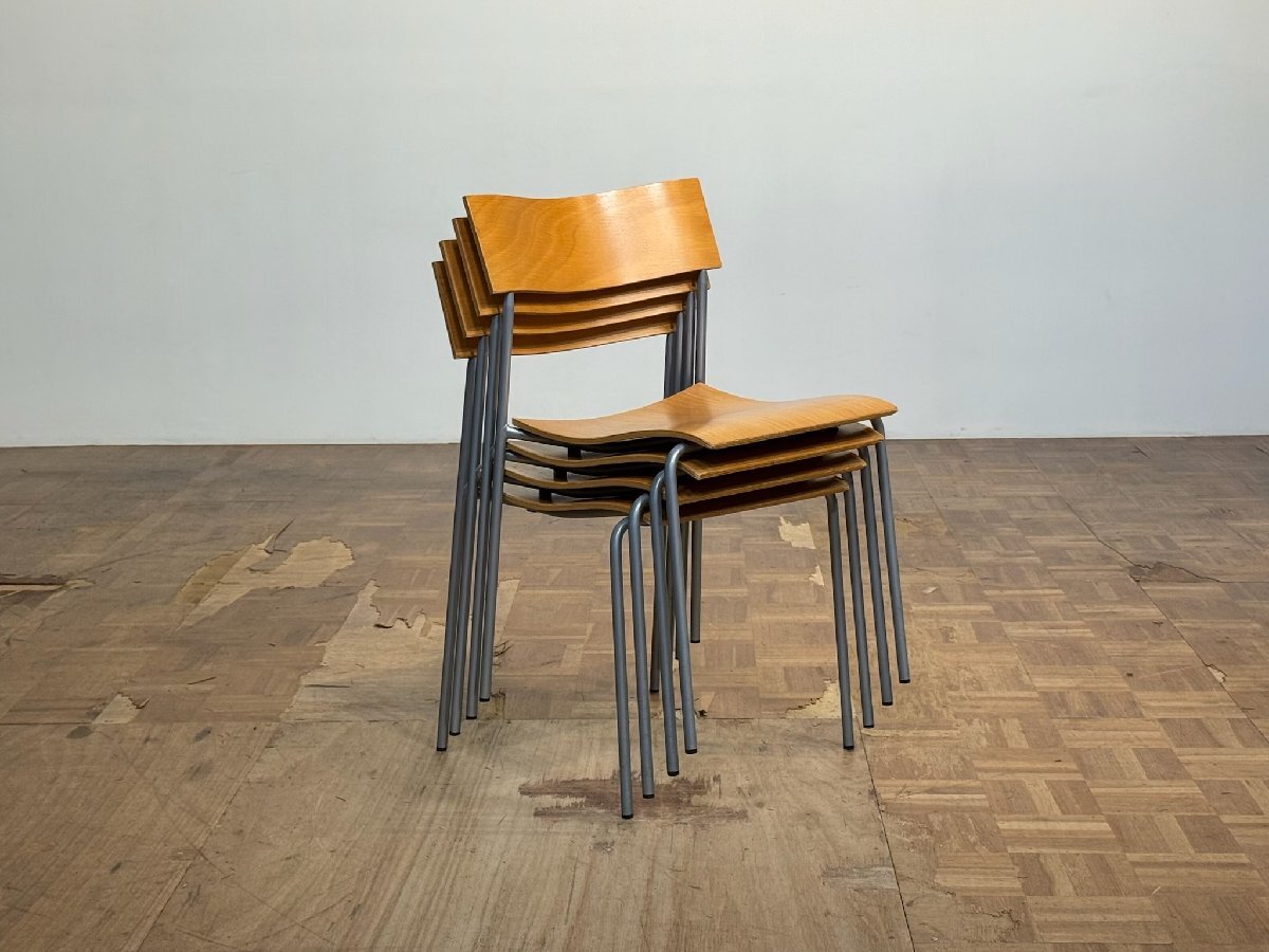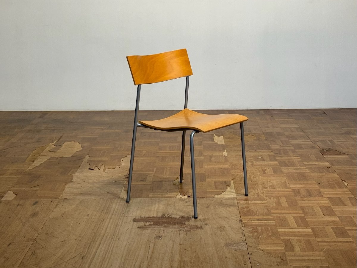 基本的なダイニングチェアのフォルムを踏襲しつつ、うっすらとした板材を風にはためく布切れのような軽やかな曲線で成形することで、並べて配置した際の流れるような空間を演出した、北欧デザインを代表する名作スタッキングチェア。スウェーデン・LAMMHULTSより / ヴィンテージ個体のご提案。