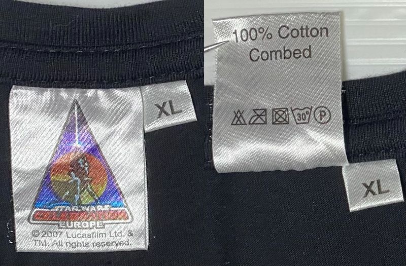 アメリカから輸入された古着です。2007年にイギリスのロンドンで開催された「スター・ウォーズ セレブレーション ヨーロッパ」のAC/DC風R2-D2ロゴ Tシャツ sixe: XL です。ボディーの色は黒です。オフィシャルです。とても珍しいです。滅多に見つかりません。