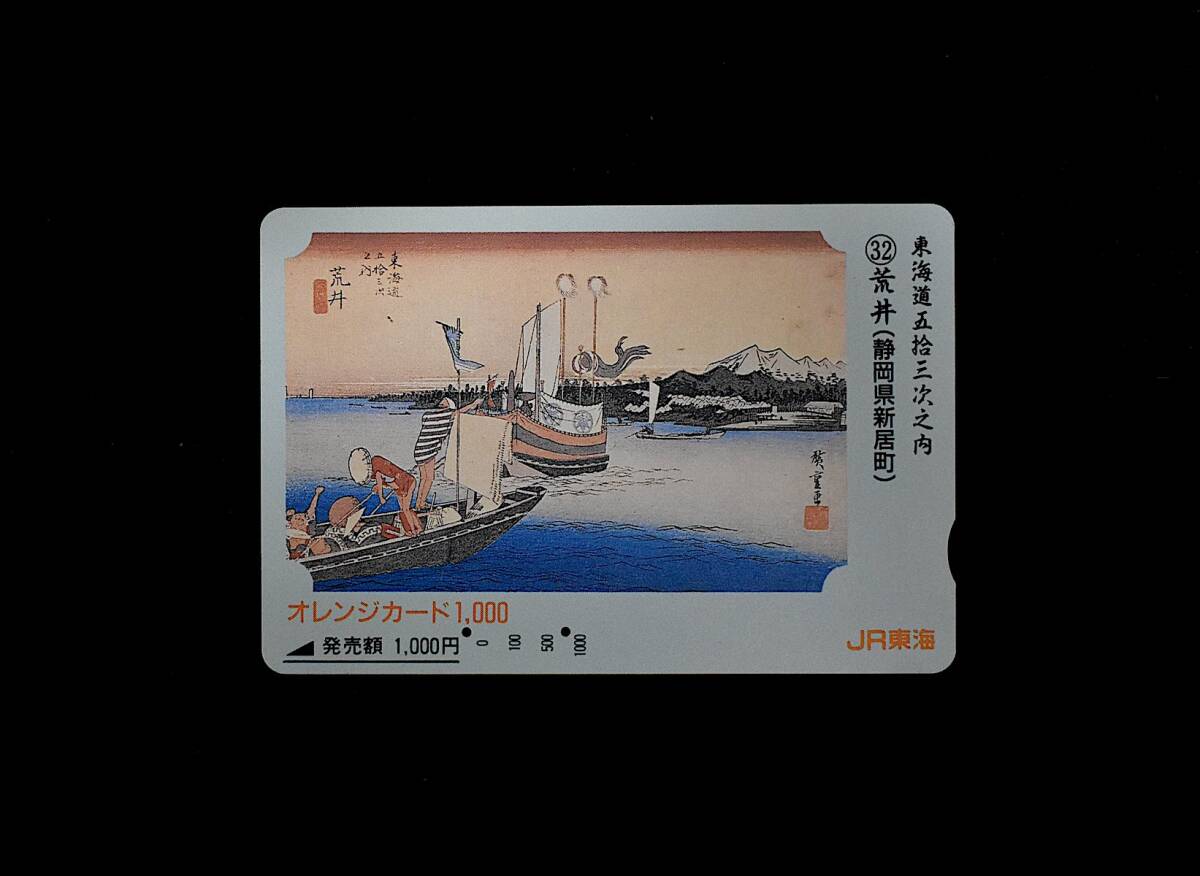 オレンジカード【使用済】JR東海:東海道五拾三次之内 32. 荒井 (静岡県新居町)