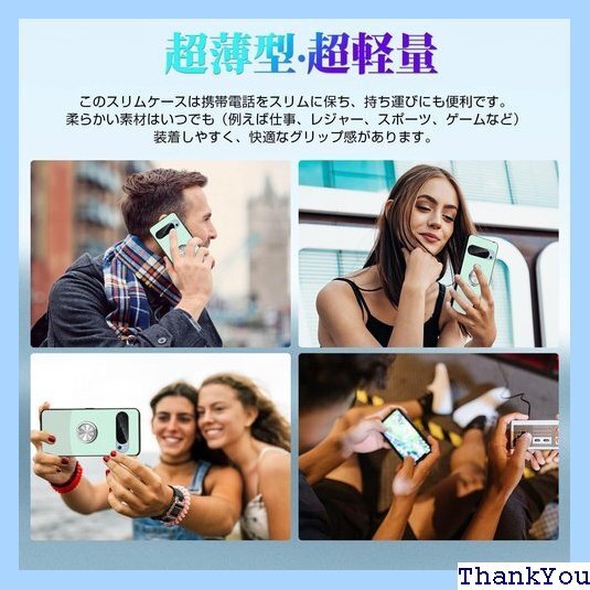 Google Pixel 9 ケース Google Pixel 9 Pro ケース リング 耐衝撃 TPU 指紋防止 シリコン 車載ホルダー対応 360°回転 ストラップホール付き滑り止め 落下防止 全面保護カバー ライトシアン 734