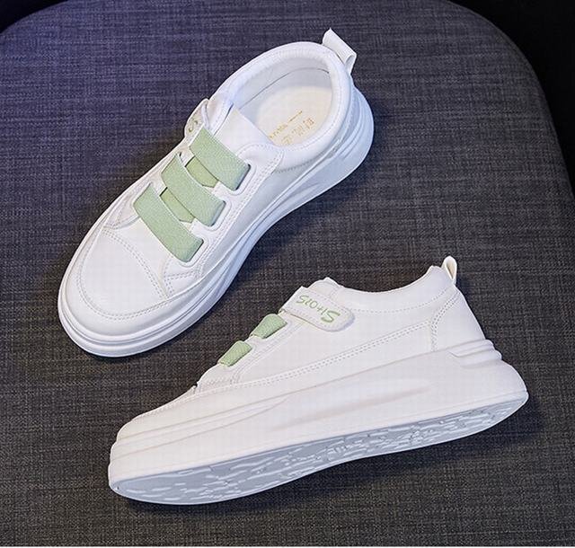厚底スニーカー ローカット マジックテープ おしゃれ フラットシューズ バイカラー 美脚 シューズ 歩きやすい 疲れない グリーン23.5cm
