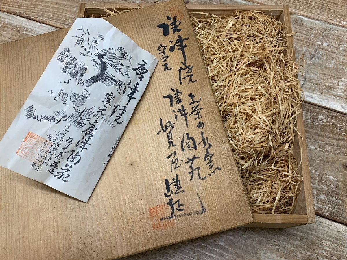 【YB-2641】美品 唐津焼 十三代 太郎右衛門窯 絵唐津 皿 直径約21.5cm 中里太郎右衛門 ? 共箱 東京引取可【千円市場】