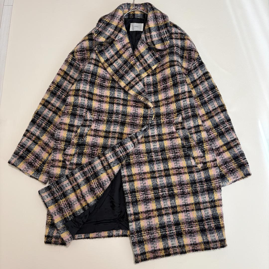 美品・完売品 イエナ GIOLICAチェックシャギーコート コクーン オーバーサイズ IENA コート PNK チェック