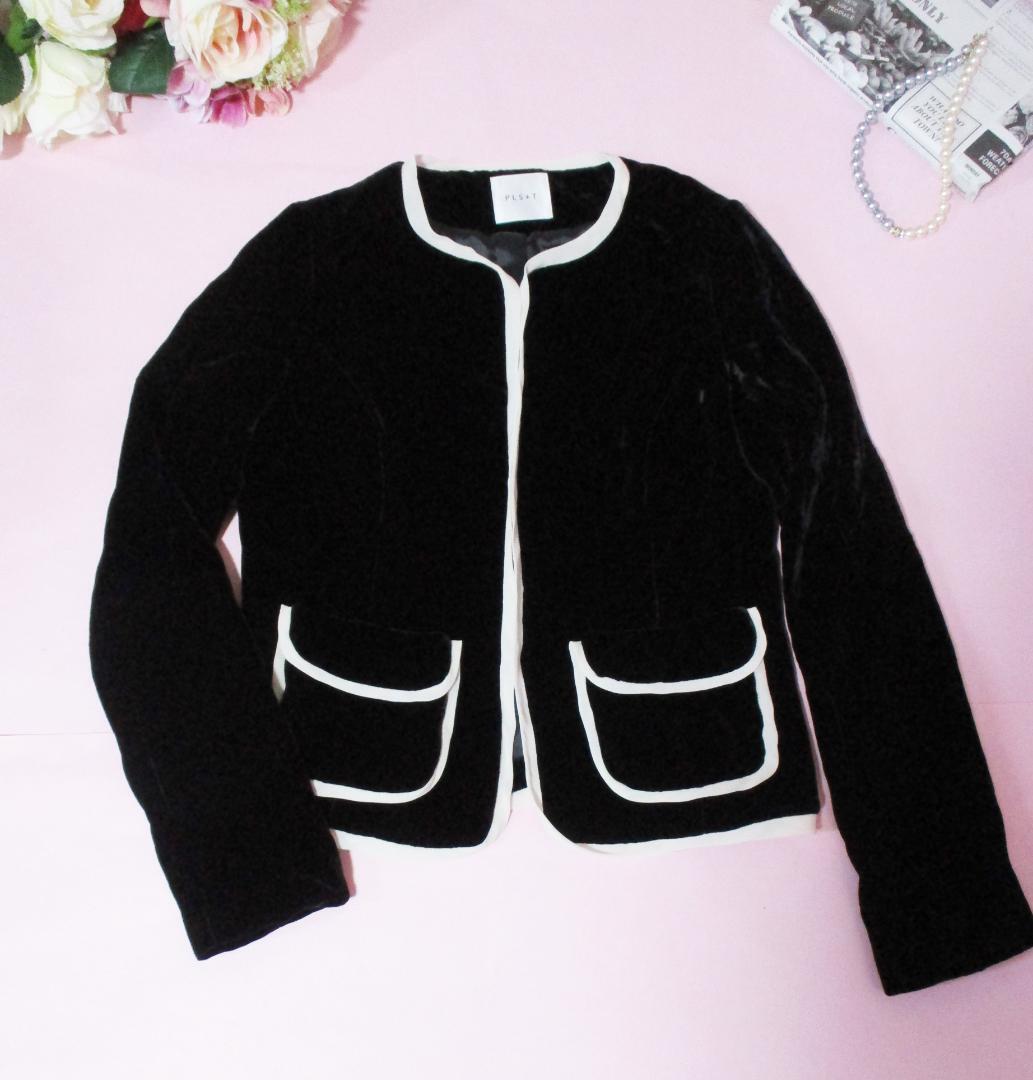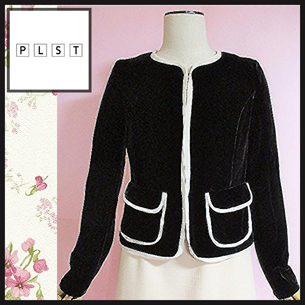 【プラステ】バイピングノーカラージャケット シルク混 黒 卒業式 入学式 2 PLST 学校訪問 学校行事 お食事会 お呼ばれ 匿名発送