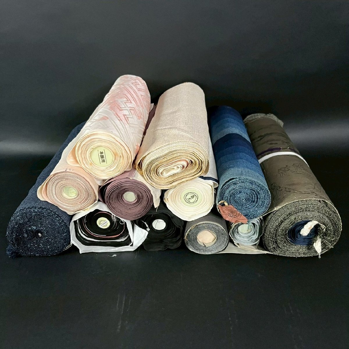 SW0905-59‐3 まとめ 反物 帯 レトロ 和服 和風 小物 着物 浴衣 伝統 工芸 和装 ファッション 生地 布 深泥染 白 ピンク ブルー 120サイズ