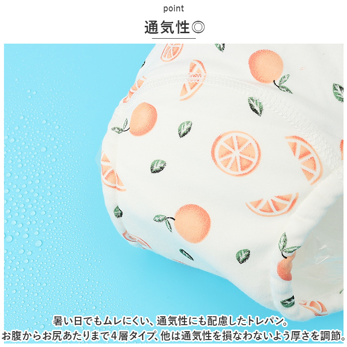 | 商品説明 | ・・選べるデザインがたくさん♪4層タイプで夏も履きやすく、頑張るママとお子様をサポート!「トレーニングパンツ 3枚セット」が登場。 ・【4層タイプ】 ・深めのお腹までのラインは4層タイプになっており、普通のパンツより吸収性をUPさせたトレパン。適度な厚さで夏でも履きやすい◎(※完全に防水する物ではありません。) ・【天然素材】 ・コットン使用の生地でお肌に優しい仕様。デリケートな部分に触れるものだから優しい天然素材で柔らかタッチなのも嬉しいポイント。 ・【通気性◎】 ・暑い日でもムレにくい、通気性にも配慮したトレパン。お腹からお尻あたりまで4層タイプ、他は通気性を損なわないよう厚さを調節。 ・【ゴム仕様】 ・ウエスト部分と股ぐり部分はゴム仕様で、漏れにくい。トレパンならではの安心仕様。 ・【嬉しい3枚セット】 ・失敗が続いても安心の3枚セット。洗濯を急がなくてもOK、頑張るママとお子様をサポート! ・【豊富なデザイン】 ・デザインのバリエーションが豊富◎今日はどのパンツを履く?とお子様のモチベーションもアップ♪楽しくトイトレ! |