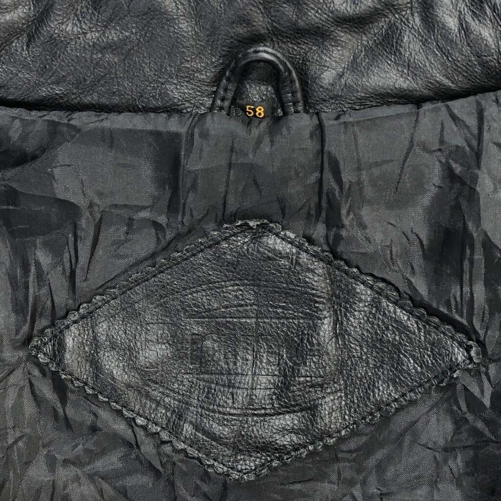 | 【商品管理番号】 V5401 【サイズ】 58 【実寸サイズ】 肩幅:約52cm 着丈:約69cm 身幅:約65cm 【主な素材】 表地 : レザー 裏地 : 13897 【色】 ブラック 【仕様】 【状態】 汚れ:腹部 特記事項:ジップ錆び | |||