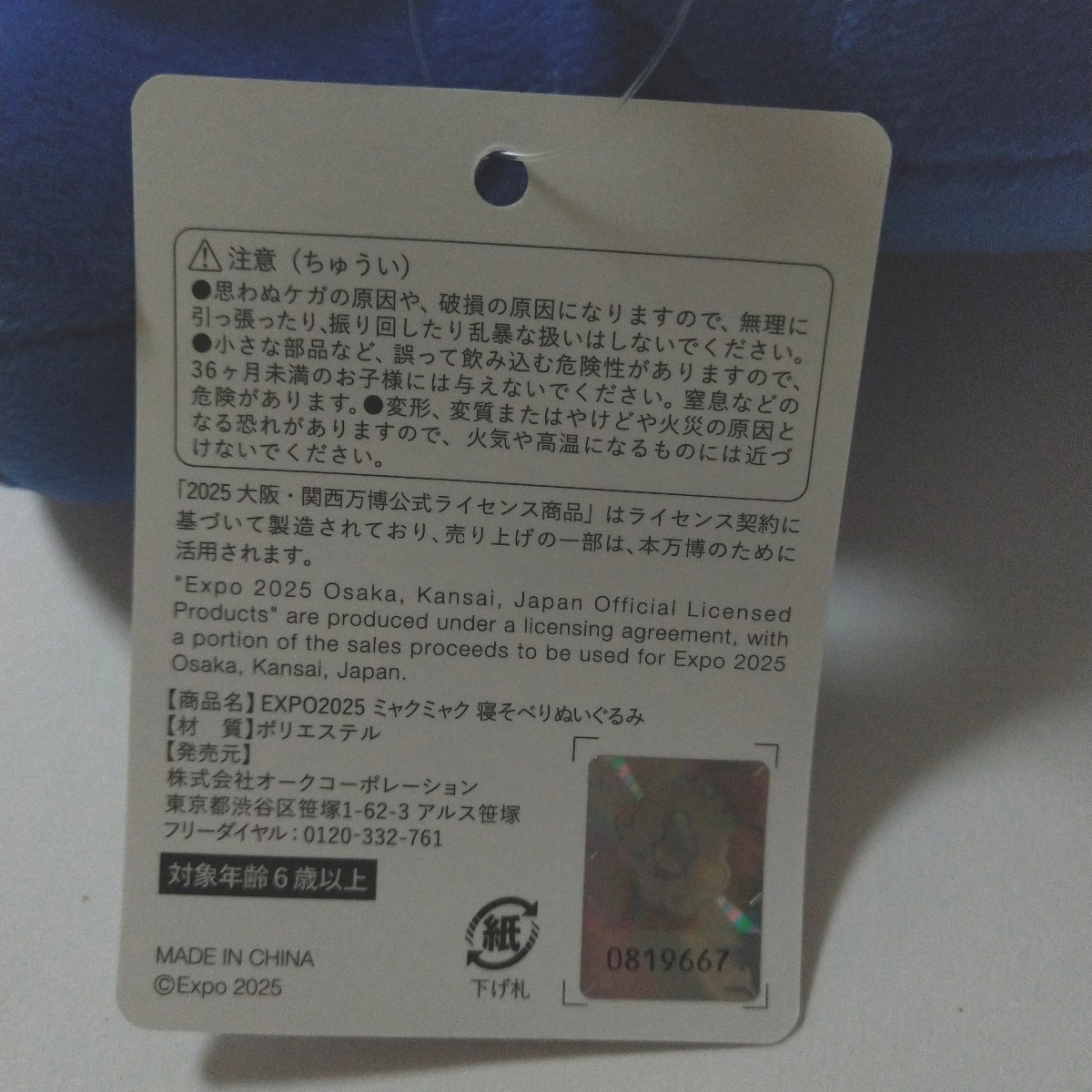 大阪・関西万博公式ライセンス商品、ミャクミャク寝そべりぬいぐるみです。