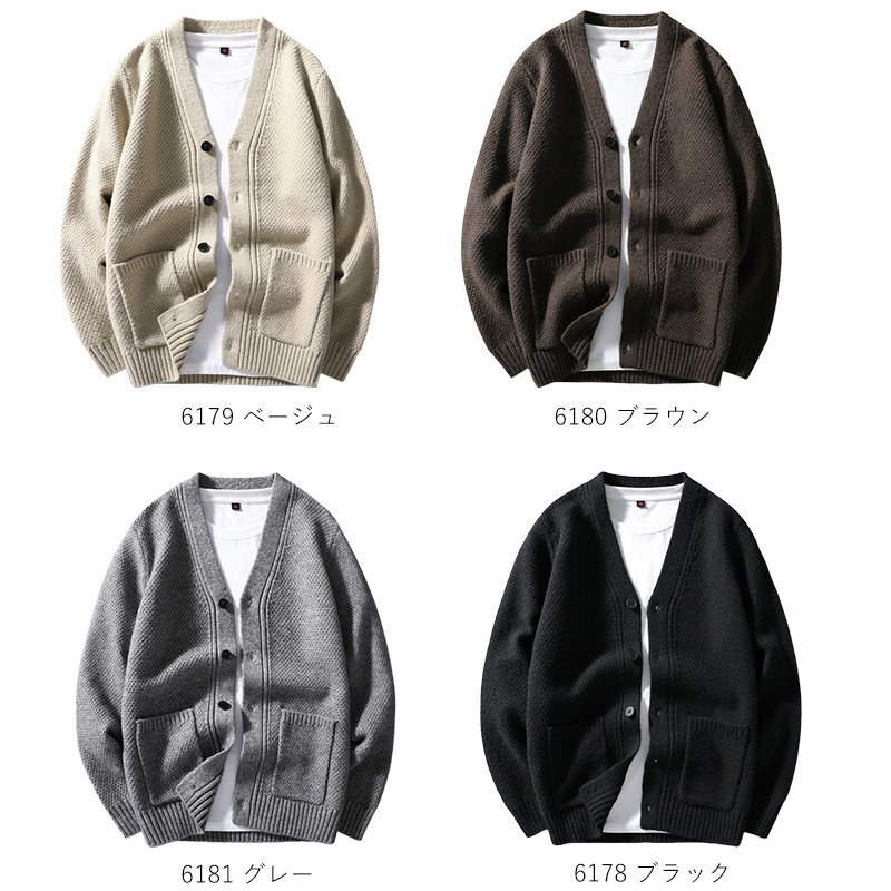 新品 ウール混 ニット カーディガン 秋冬 厚手 無地 Vネック セーター メンズ 秋冬 暖かさ ニットジャケット アウター ブラック T6178-L