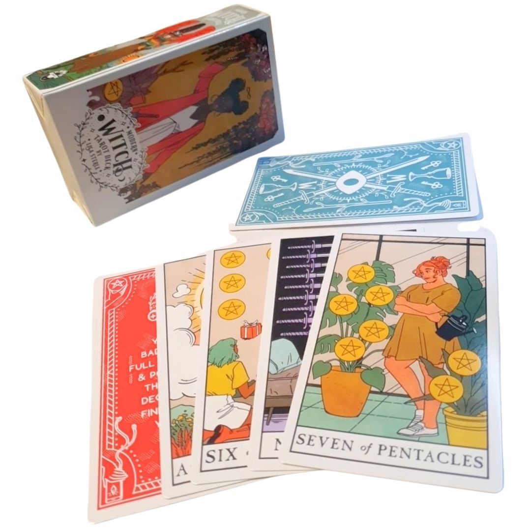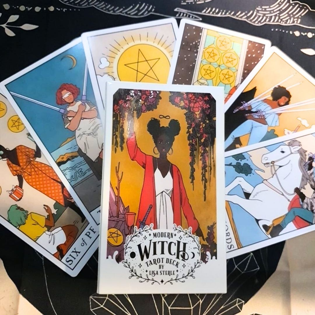 【モダン】現代のウィッチクラフトやスピリチュアルをテーマにしたタロットデッキ。伝統的なタロットの象徴に加え、都会的でスタイリッシュな魔女のイメージが融合。カラフルかつ洗練されたアートで、女性や若い層に人気。78枚構成で、自己成長や直感力を高めるツールとして使われます。