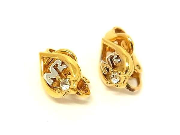 ■美品■ NINA RICCI ニナリッチ NR ラインストーン クリップ式 イヤリング アクセサリー レディース ゴールド系 DG2841