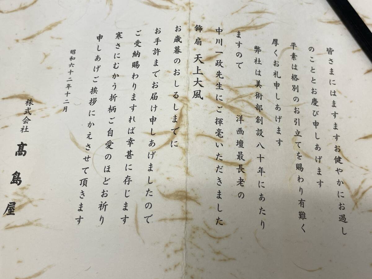 | 【Y1046】 高島屋 外商 末広 中川一政 筆 飾扇 天上大風 未使用 | ||