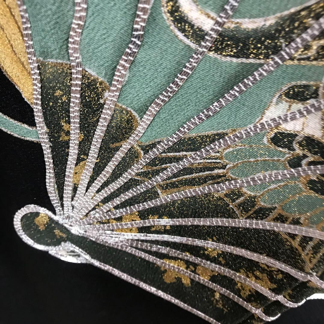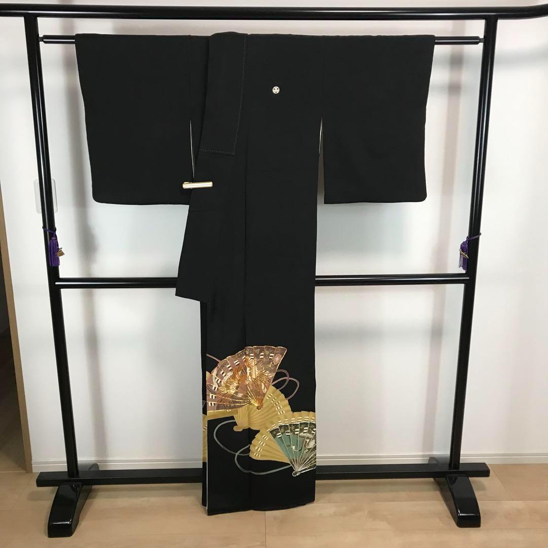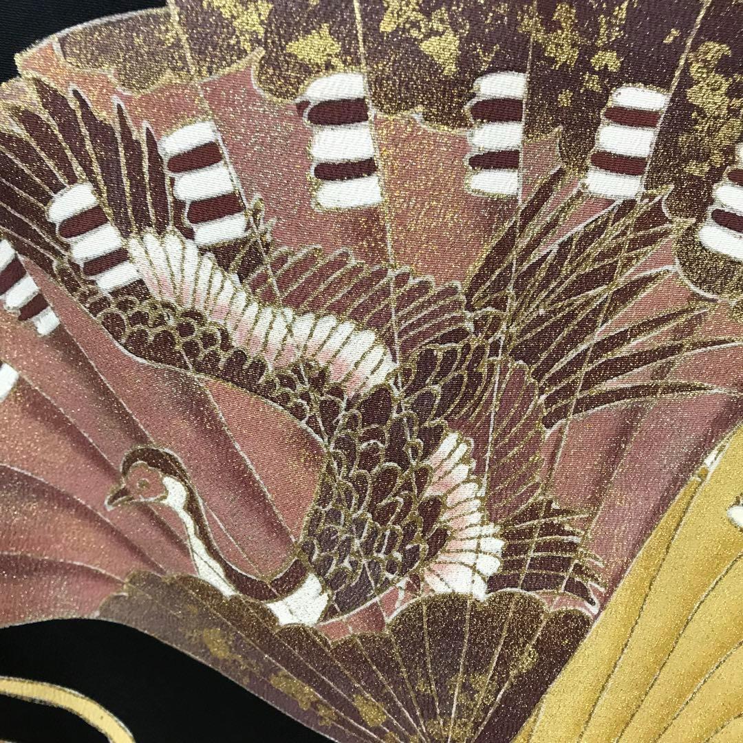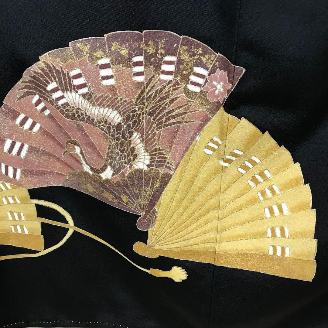ZF-1113 黒留袖 扇子 鶴 金駒刺繍 銀駒刺繍 正絹 比翼仕立 逸品