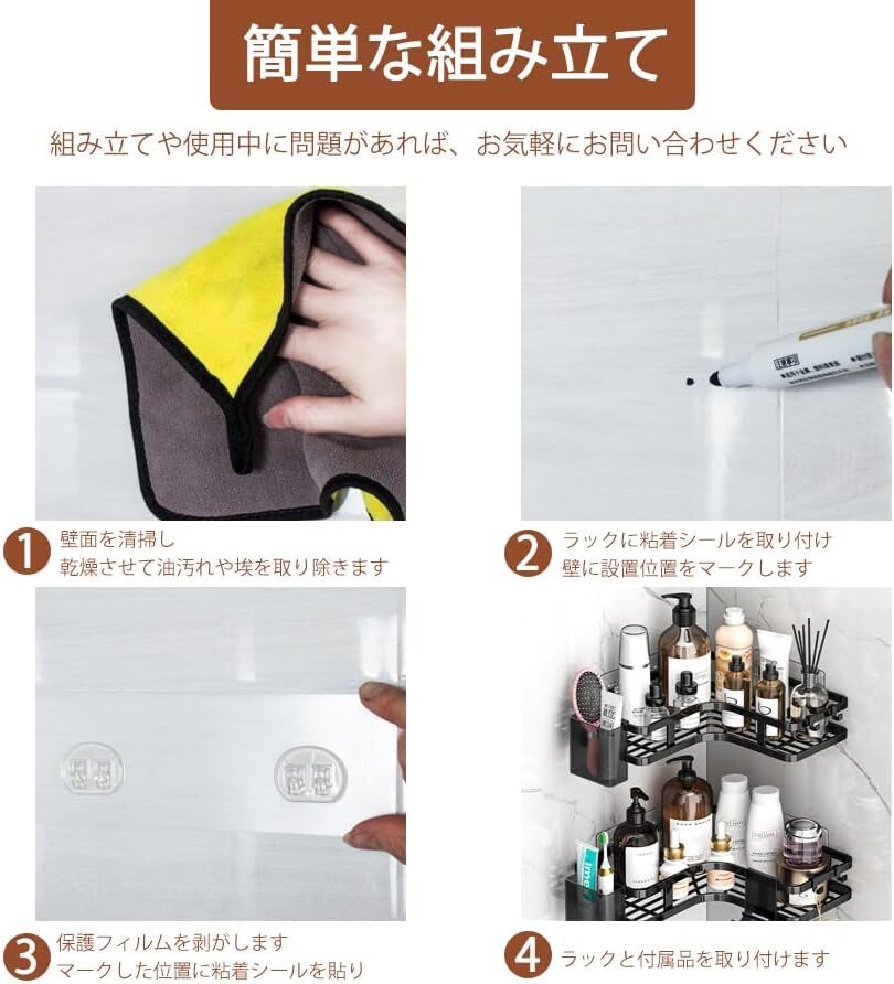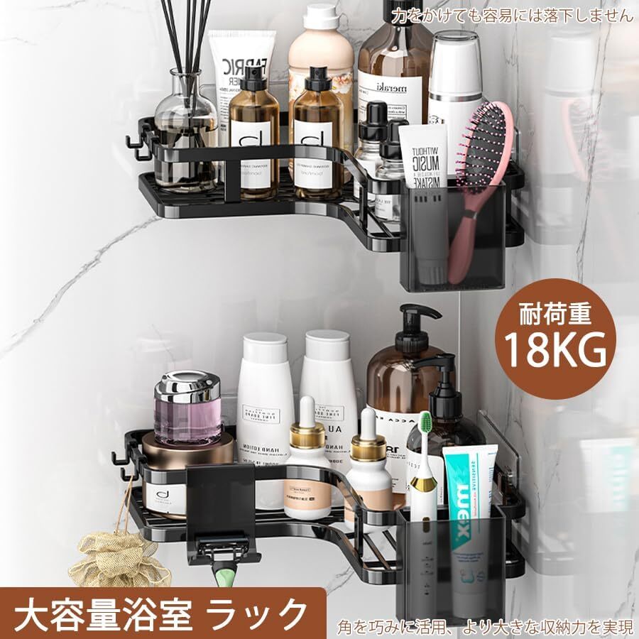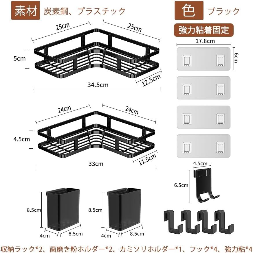 ブラック色 2個 Zilnox 浴室用ラック シャワーラック 強力粘着固定 お風呂 収納 浴室 洗面所 バスルーム