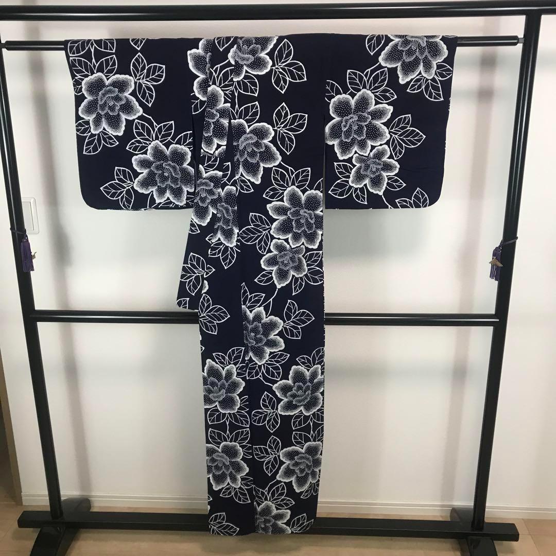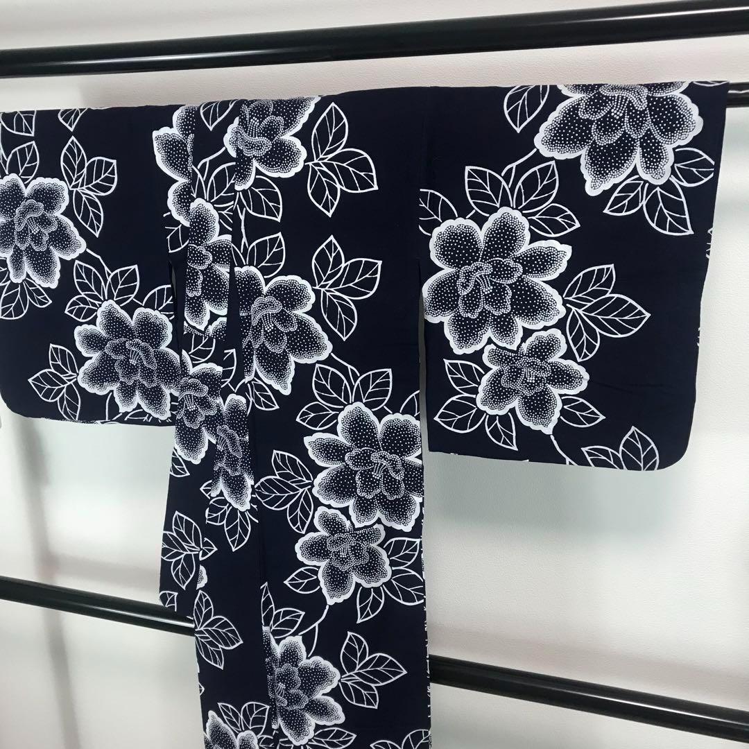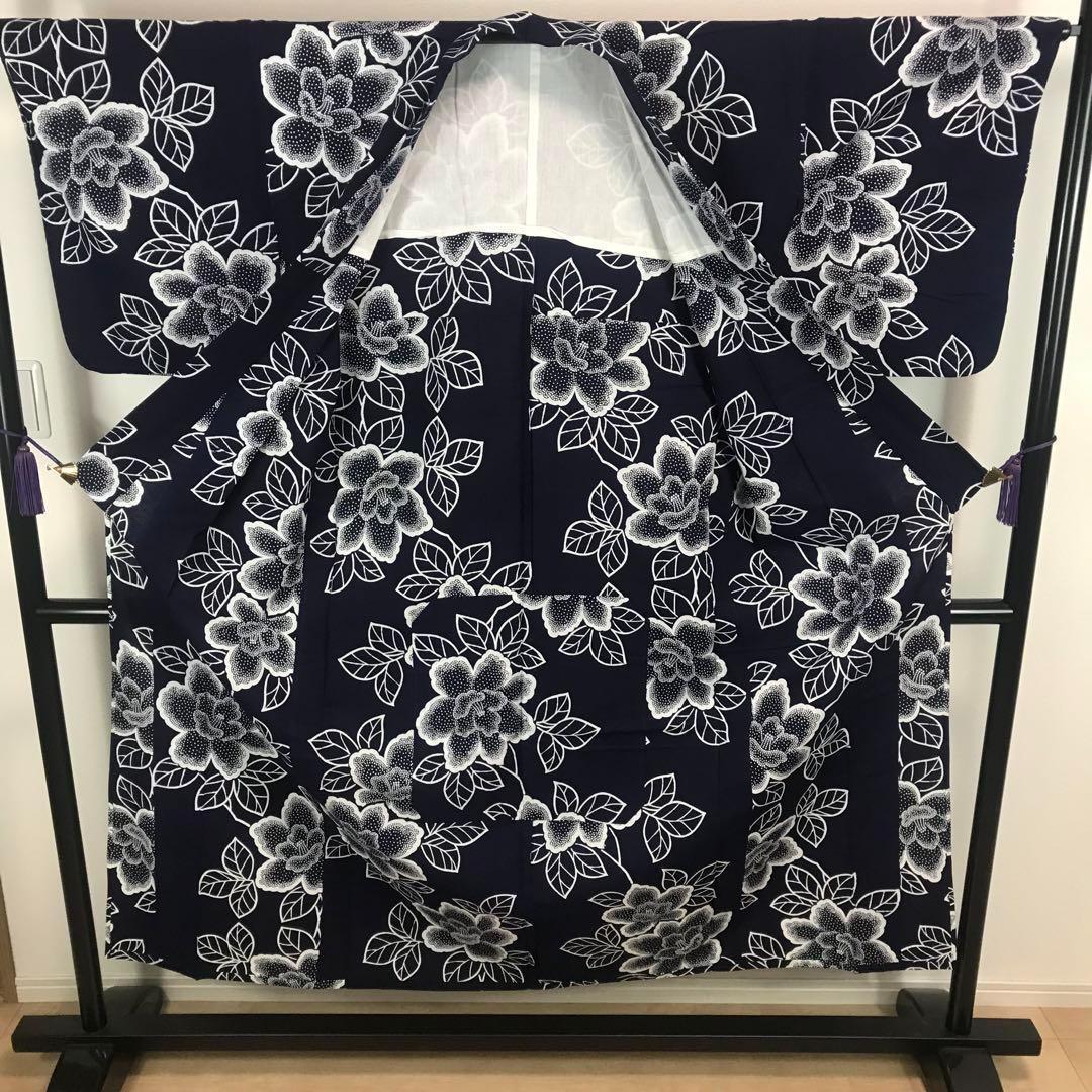 ZF-1233 浴衣 綿 手縫い モダン ハイセンス 状態良 スモールサイズ