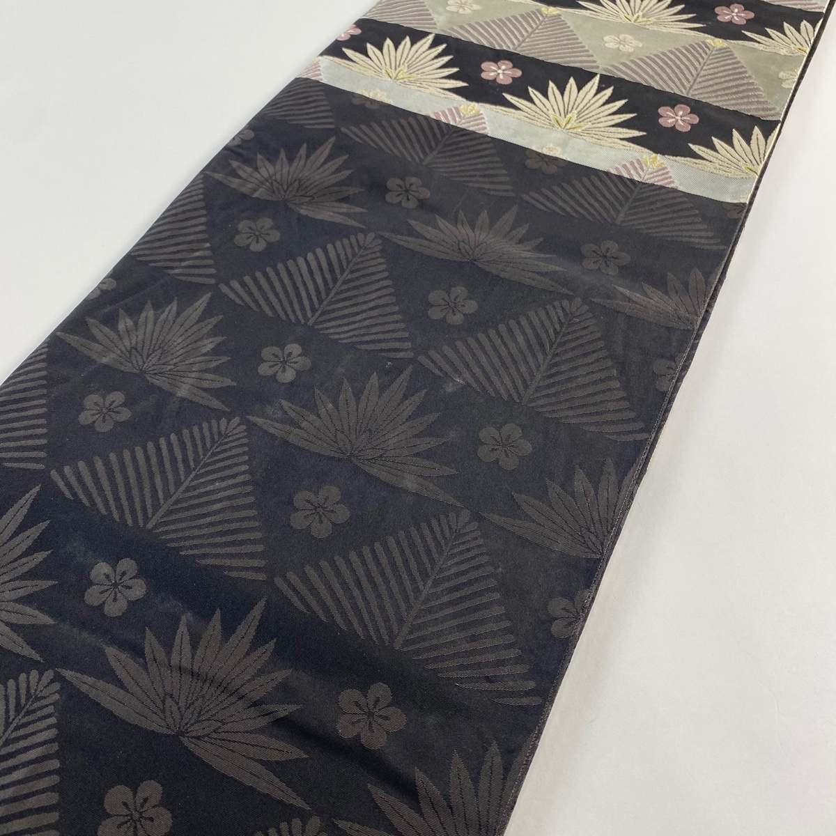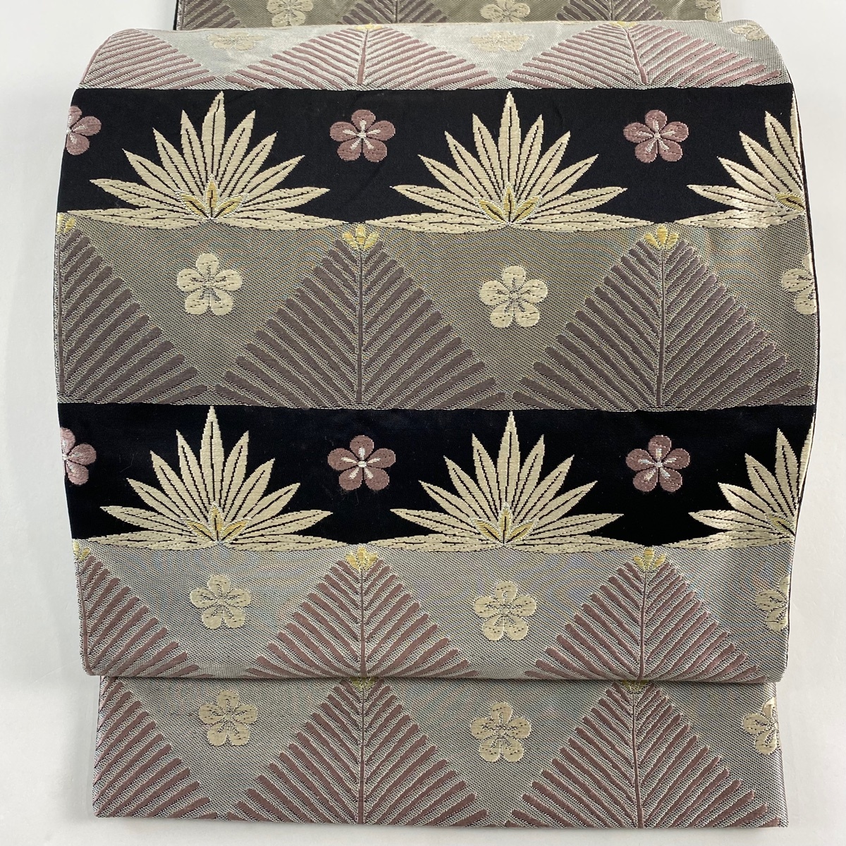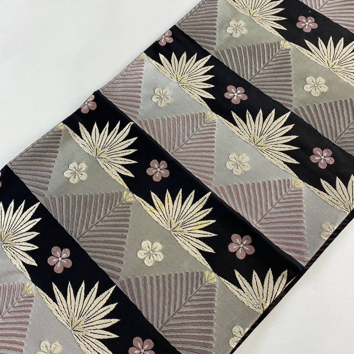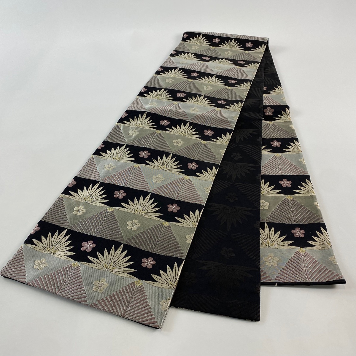 | 袋帯 美品 秀品 鈴乃屋 松竹梅 段縞 箔 金銀糸 黒 六通 正絹 【中古】 |