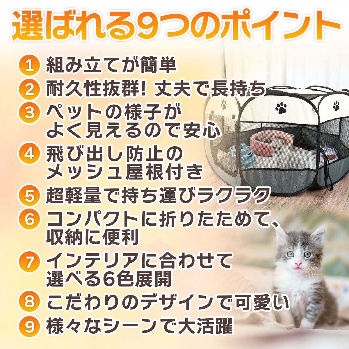 楽に持ち運びができるペットサークルをお探しの方におすすめです。来客時など自宅での使用はもちろん、アウトドアや旅行、帰省、災害時など、様々なシーンで活躍します!