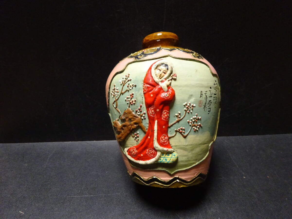 (11−10)壺 美人画 小壺 花瓶 焼き物 美人画 飾り壺 陶器 日本のものでは無いと思います。不勉強で分かりません。