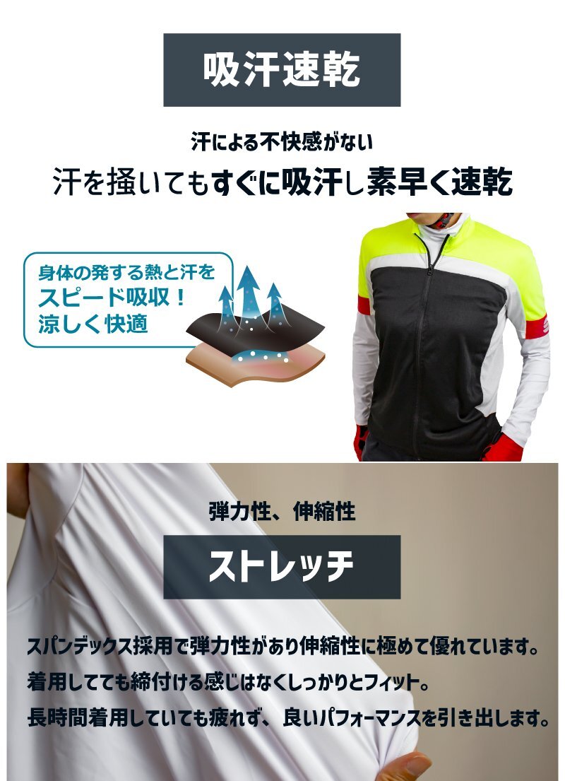 ハイネックで首元までしっかりuv対策!被るタイプのズレないアームカバー 接触冷感とuvカットの機能を兼ね備えた夏のスポーツに最適なネックアームカバーです。 最高値のUPF50+で紫外線から肌を守り日焼けを防止します。 着用方法はネックカバーを着用してからサイクルジャージや半袖シャツ、ポロシャツを着ます。 ハーフ丈なので初めは不思議な感覚ですが、慣れれば快適になります。 冷感×吸汗×速乾×通気性×ストレッチに優れた機能的なカバーウェア。 サイズはMとLの2サイズにカラーはブラック、ホワイトの2色をご用意しました。 ロードバイクなどの自転車でのサイクリングやバイクでのツーリング、釣りや山登り、ゴルフ、テニス、ランニング などの夏アウトドアスポーツに大活躍。また屋外での農作業や現場作業などにもおすすめです。 [ズレ落ちないアームカバー] アームカバーならではの袖から腕がでる問題も解決!ストレスなく体を動かす事が出来て激しい運動をしても気にならない。 [UVカットUPF50+] 夏のスポーツで特に気になる紫外線。 日差しから肌を守り、直射日光による体温の上昇を防ぎます。 首も腕もしっかりとしたuvケアに役立ちます。 最高値のUPF50+で紫外線から肌を守り日焼けを防止します。 [接触冷感] 日に当たらないから肌を露出するよりも涼しい。 肌触りが良くサラッとして、涼しい生地でとても柔らかい。 水や汗で生地が濡れると気化熱の作用により冷却効果を発揮し。 [吸汗速乾] 汗を掻いてもすぐに吸汗し素早く速乾するので汗による不快感がない。 [弾力性、伸縮性] スパンデックス採用で弾力性があり伸縮性に極めて優れています。 着用してても締付ける感じはなくしっかりとフィット。 長時間着用していても疲れず、良いパフォーマンスを引き出します。 [幅広い用途に] ロードバイクなどの自転車でのサイクリングやバイクでのツーリング、釣りや山登り、ゴルフ、テニス、ランニング などの夏アウトドアスポーツに大活躍。また屋外での農作業や現場作業などにもおすすめです。 商品内容uvネックアームカバー 素材85%ポリエステル、15%スパンデックス 《ご注意》・※手洗いが推奨します ・商品は入荷によりキズがある場合があります。 その場合、保証対象外になりますのでご了承お願い致します。 ・ディスプレイ環境により実物と色が異なる場合が有ります。 ・入荷時期により予告無く一部仕様変更する場合が有ります。 |