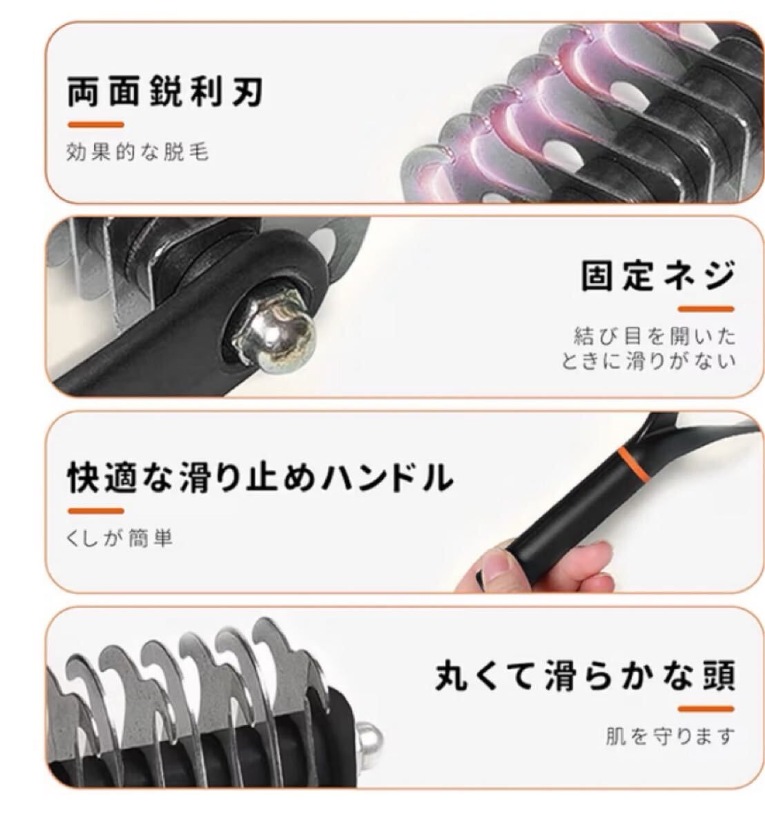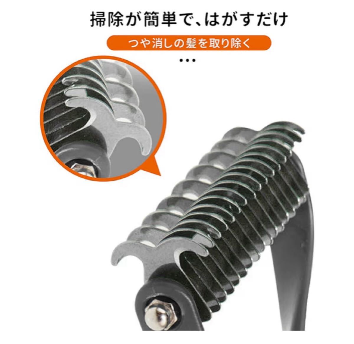 ステンレス製両面歯デザイン:12本歯のサイドハサミでペットを結び、23本歯のサイドの細い髪で脱毛します。ペットの髪をふわふわにします♪
