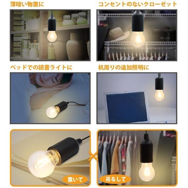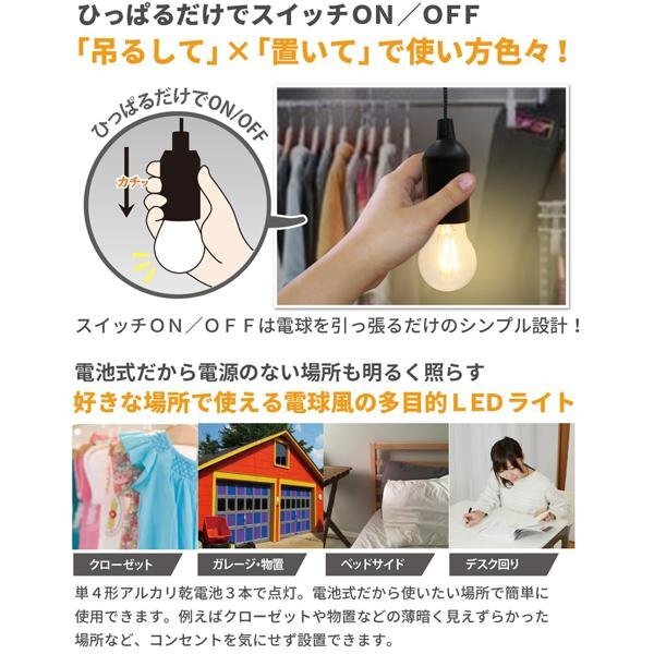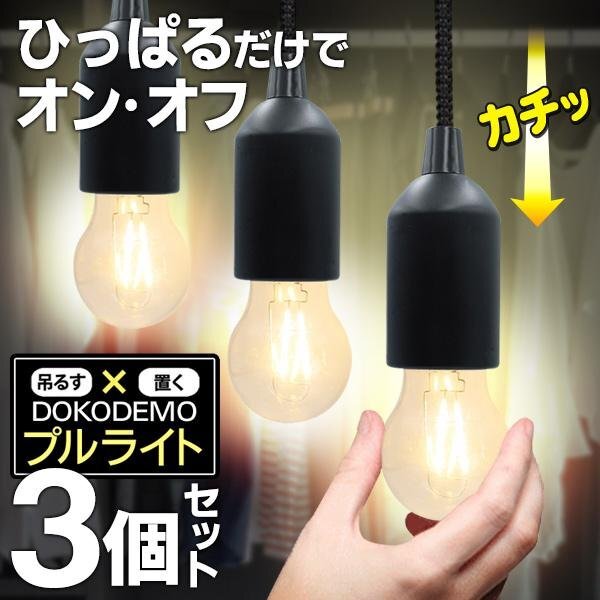 ライト 3個セット 吊るす 置き 乾電池式 単4 引っ張る LEDライト 照明器具 アウトドア 新生活 送料無料- 60N◇ どこでもプルライト:3個