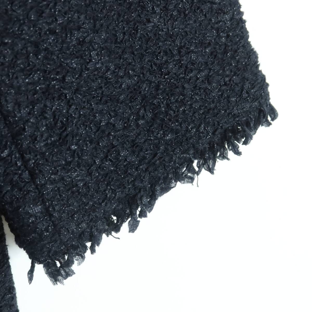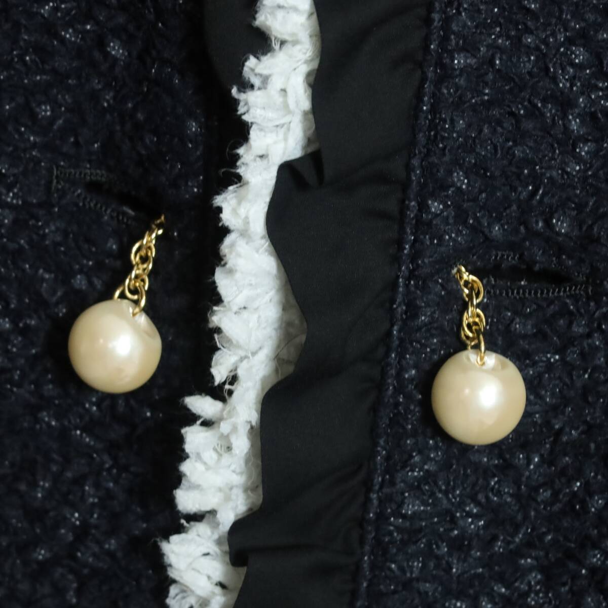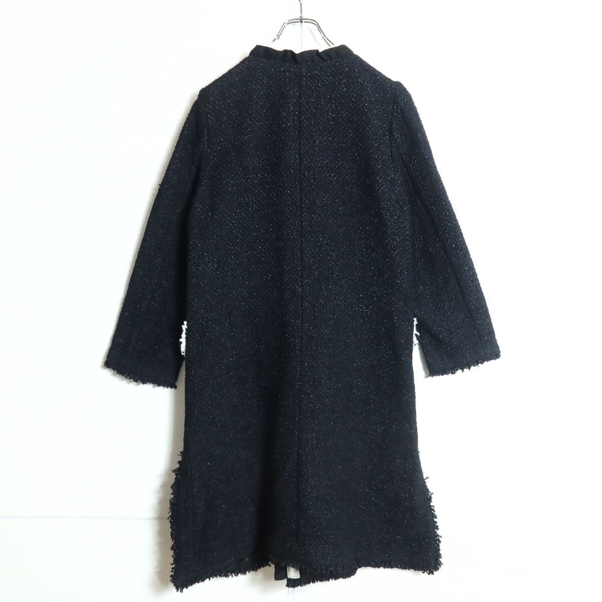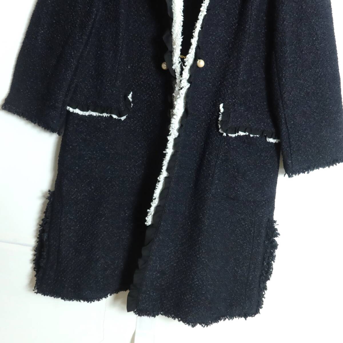 | 商品説明 | 【実寸約】肩幅40袖丈58後ろ幅50着丈96(cm) 【サイズ表記】 4(サイズ11号) 【素材】ナイロン53綿47 【状態】使用感少なめの美品 残布有 【デザイン】 黒×白系 凹凸のある素材が上品なコート、羽織ものです。 波打つようなフリルが、襟ぐりからフロントにほどこされています。 フロントにはボタンの代わりにパールビーズとチェーンで留めるデザイン。 ロマンティックコーデの仕上げにピッタリのアイテム! やや厚手/ポケットあり |