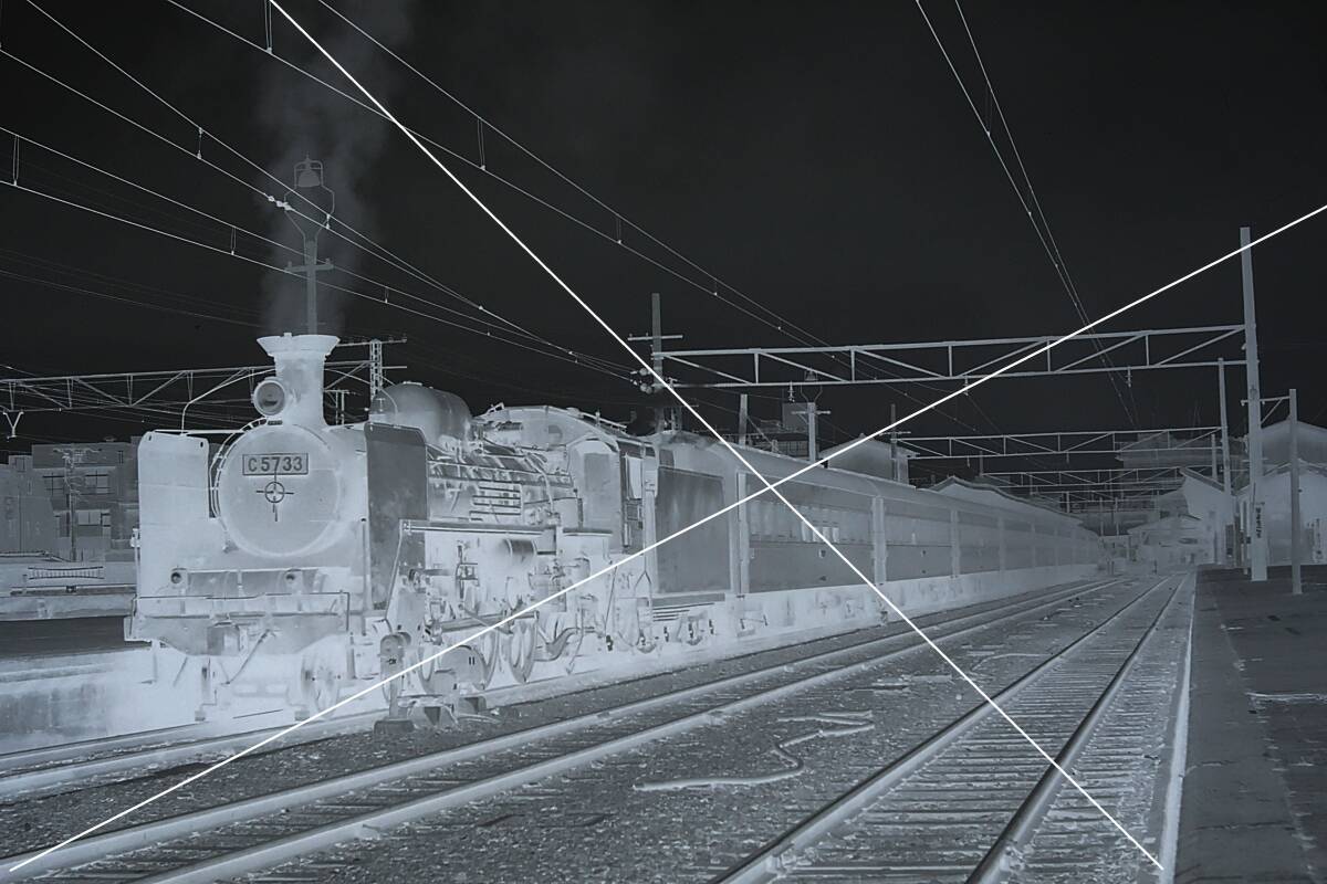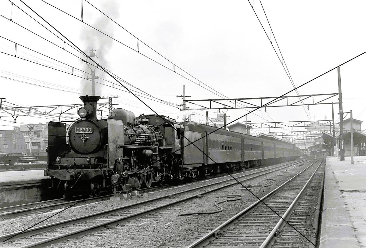 C5733+PC-標準55mm-休日房総号-房総西線=昭和40年代のSLモノクロネガ35mm1コマ#31A31B/両国駅/9171レ/S43.5.3/著作権譲渡証明書=有り