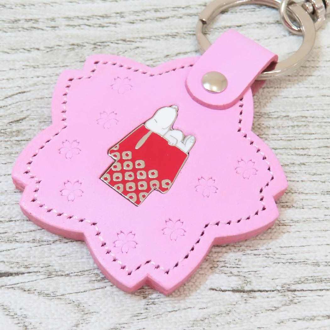 スヌーピー キーリング レザーキーホルダー 桜 ピンク 鹿子模様 ピーナッツ 牛久保工芸社 キーホルダー キャラクター グッズ