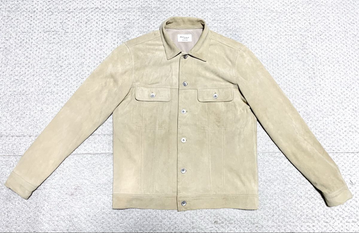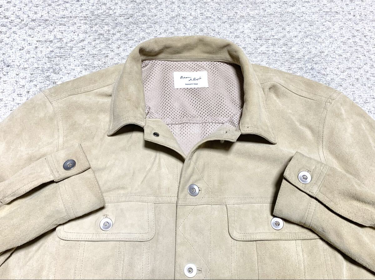 極上:ADAM ET ROPE.ゴート スエード レザー Gジャン L(ジャケット/ブルゾン/上質.山羊革/肩46幅55丈66/tomorrowland beams workers type)