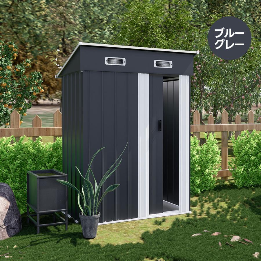 【可動棚付き】物置 屋外 スチール 倉庫 床材補強フレーム付き 戸外収納庫 幅148*奥行き82.5*高193 物置き 【ブルーグレー】
