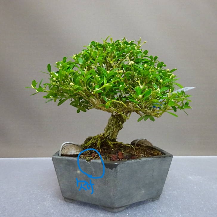 | 注意事項 | 鉢のフチに欠けあり ※商品到着後、直ぐにお水をあげてください。 ※当店は定期的に害虫対策として消毒、殺菌をおこなっております ※有機肥料を主に使用しておりますので発送後、まれに虫がつく場合がございます。 ※モニターの発色具合によって、実際のものと色が異なる場合がございます。 ※商品は鉢入りの盆栽のみになります。(卓、作業台、小物等は撮影用です。) ※あらかじめご了承くださいますようお願いいたします。 |
