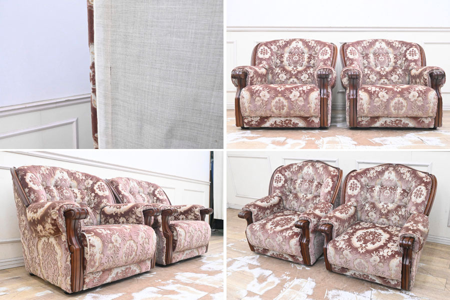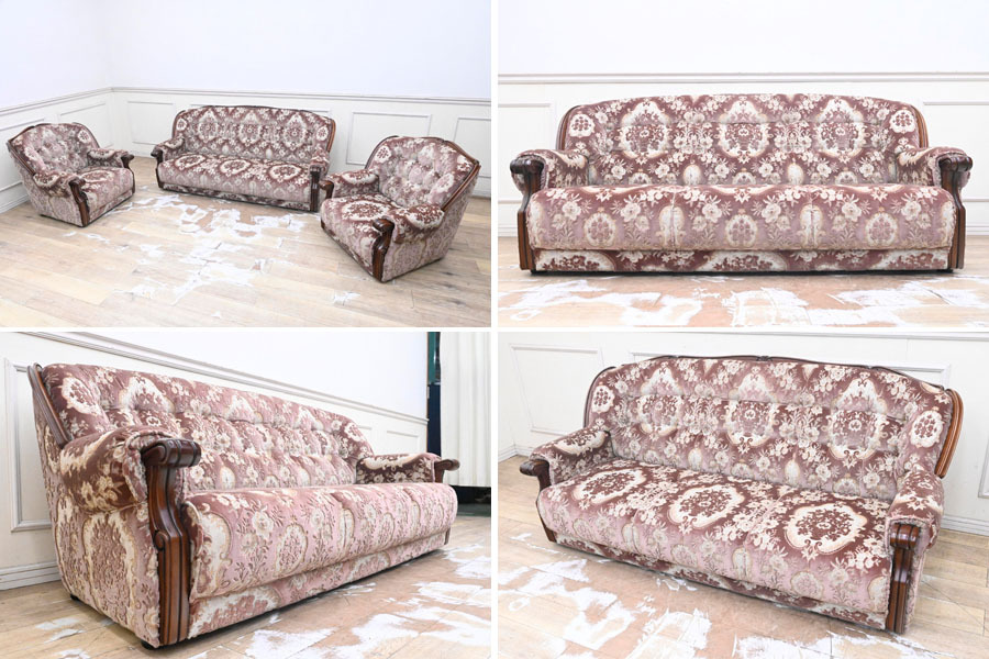 ----------------------------------------------------------------------------------------- ●送料や注意事項は必ずご確認下さい。落札後にトラブルになるケースが増えております。● ◆コンディションは写真・文章にて記載して有りますが、全てのキズの写真は掲載致しておりません。大きなダメージを除き見落とし、記載漏れが有る事はご了承下さい。 ◆当サイトにて出品する商品は多種多彩で、当方商品知識の無い物も多数ありますので落札後の質問やメンテナンス等にはお答えできません。 ◆入札された時点で、画像、文章をご理解していただいたものと判断させていただきます。不明な点は前もってQ&Aからお願い致します。入札後の質問やお電話等でのキャンセルは一切受け付け致しません。 ◆商品説明に「ノークレーム」と記載しているものに関しては、如何なる状況で届いても保証致しません。詳しくは注意事項の「商品到着後について」の最後に記載しておりますのでご確認下さい。 ---------------------------------------------------------------------------------------- 日本を代表する高級家具メーカー、カリモクのソファ3点セットの出品です。 ※写真のテーブル類は別売りです。当サイトにて出品中か、売れている場合も有ります。 カリモクは、”100歳以上の木を使い、使い捨ての時代に壊れなく受け継ぐを基本に細部まで完璧に作り上げます。 高価なイメージのカリモクですが、完成度、ネームバリューから考えても後悔の無い日本一有名な高級家具メーカーです。 3P 幅184 奥87.5 高82 座高34cm 1P 幅83 奥87 高80 座高34cm 【コンディション】 中古品ですので多少のキズ、ダコン、薄汚れ等有りますが超美品と言える非常に奇麗なお品です。 新品で購入すれば非常に高価なお品ですのでお見逃がしの無いように。 | ||
