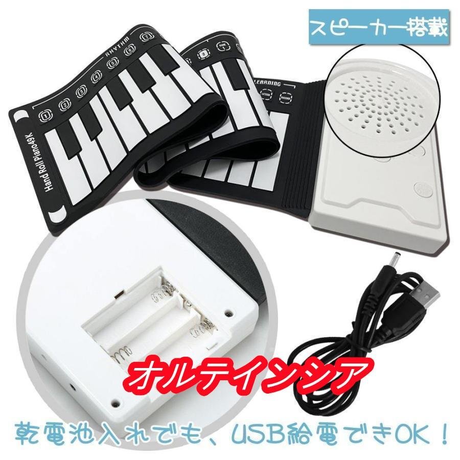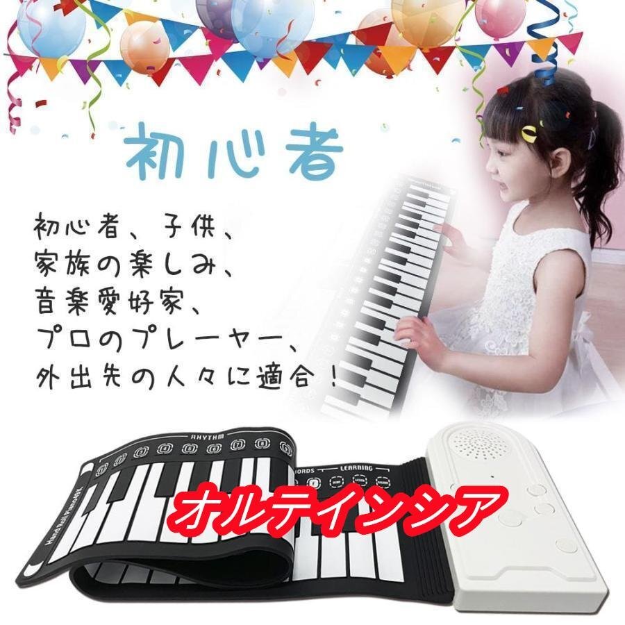 ※本製品は柔らかく巻いて収納できる素材で出来ているため、製品を置く場所により稀に「音が出ない」、または「反応が遅い」「一度鍵盤を弾くと、同じ音が2.3回鳴る」といった症状がでる場合があります。 テーブル等固く平面な台の上での使用をお勧めいたします。普通のピアノと素材が異なるため、鍵盤の真ん中を押して、