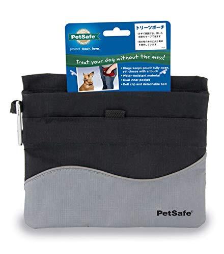 「PetSafe(ペットセーフ)犬 トリーツポーチ ブラック」▼729849134775▼(商品説明)ブラック/-/0729849134775・Color:ブラック・パッケージ個数:1・トレーニングやお散歩時に便利なトリーツポーチ。開口部が大きいので中身が取り出しやすいつくりになっています。・特殊な金具を使用しており、開けた状態をキープできます。片手ですばやくワンタッチ開閉できるので、お散歩のときはもちろんトレーニング時にも使いやすくなっています。・撥水加工された汚れにくい生地を使用。ベルトクリップ、調整可能ベルト、カラビナ付きで幅広い使い方が可能です。・ポケットは全部で3ヶ所。 フロントとインナーポケットにはマジックテープが付いており、中に入れた物が落ちにくくなっています。・サイズ:縦16cm × 横20cm × 奥行き1.5cm 重さ約200g ポリエステル製商品紹介 プロが使う「ほめるしつけ」用ポーチです。開いた状態を保持できる特殊ヒンジを採用しているので、タイミングよくごほうびのスナックを取り出して与えることができます。 内ポケットでおやつを2種に分けて入れられます。大きな外ポケットに携帯電話や小銭入れを入れることができます。 使用方法 ベルトクリップ、調整可能ベルトにて使用