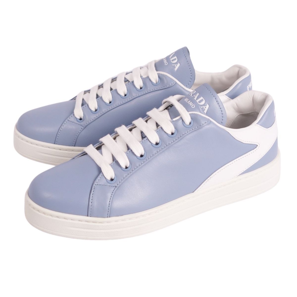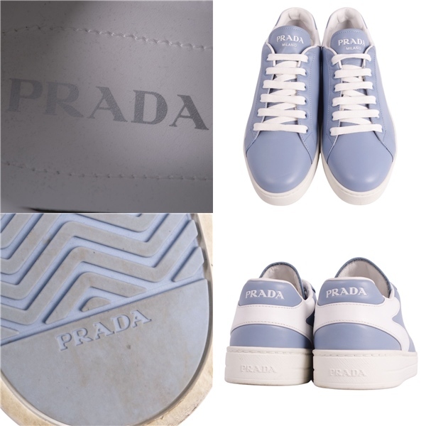 | 美品 プラダ PRADA スニーカー ローカット レザー シューズ 靴 レディース イタリア製 38(25cm相当) ブルー |