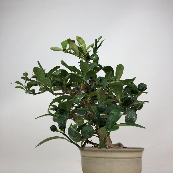 | ■植物ですので撮影時期や季節によって剪定などの手入れにより写真から変化がございます。撮影日をご確認のうえ、ご注文ください。 ■翌年の実付きをよくするために1月末~2月にかけて摘果しています。お届けの商品には金豆の実がない場合がございます。 【金豆盆栽】 開花時期は、夏6月~8月頃にトゲのある枝の脇に花芽が複数つき小さな白い五弁花を咲かせます。花後に小さな実が結実し、これが段々大きくなって秋~冬頃には橙色の実に熟します。暖地性の植物になりますので、寒さに弱く霜や乾風に当てないよう管理が必要です。 キンカンの矮小品種で茎に鋭い棘があります。 和名は金色の果実が豆のように小さいことから金豆と付けられました。 |