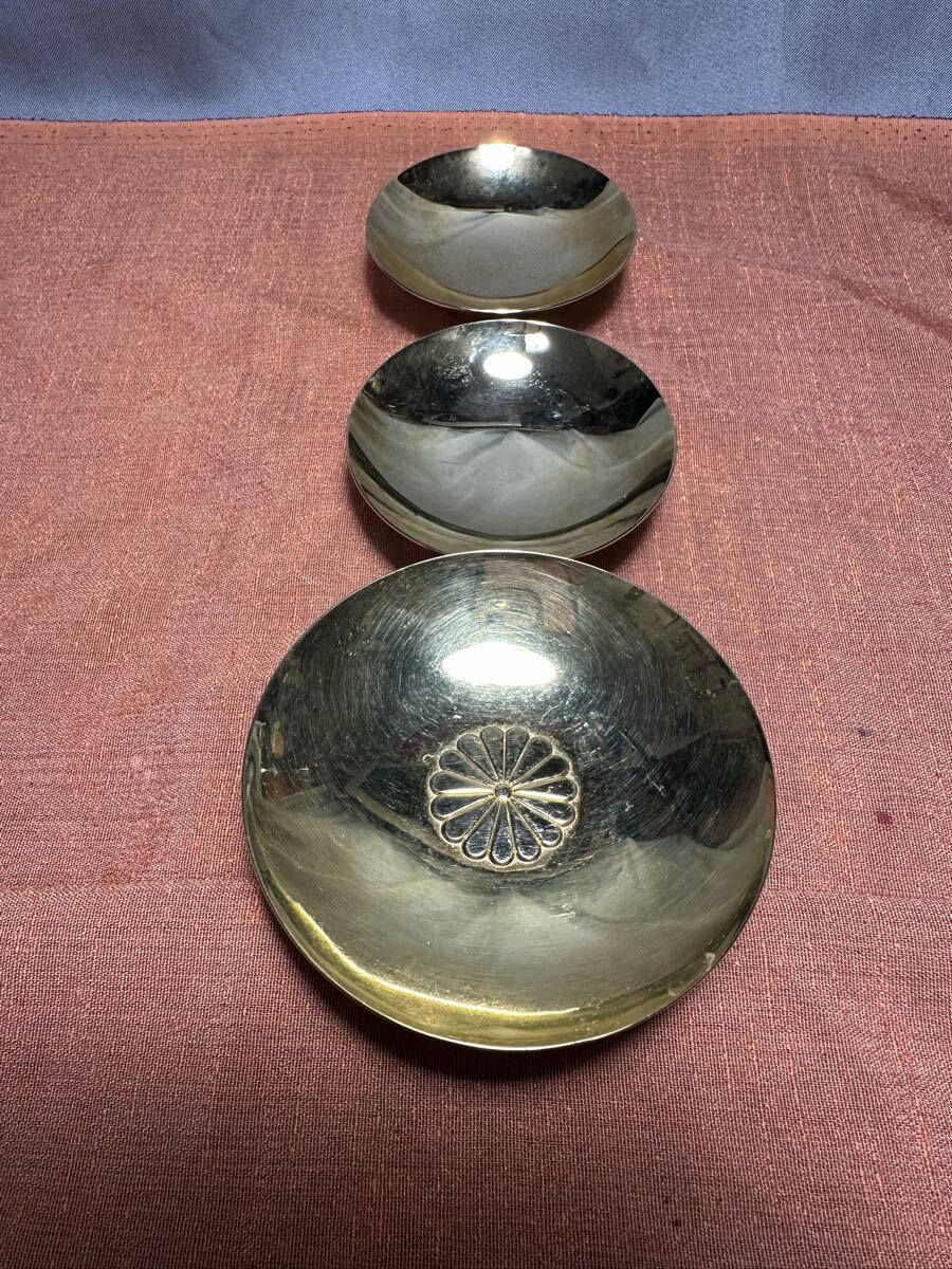金杯 菊の紋章 刻印あり1枚(90cm )、刻印ない2枚(74cm)ゴールド 24K GP 計 3枚 中古品