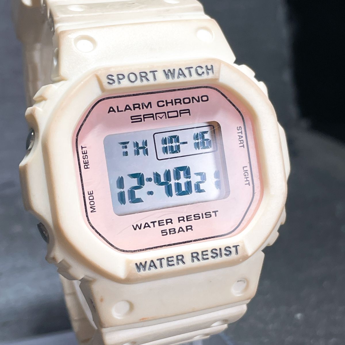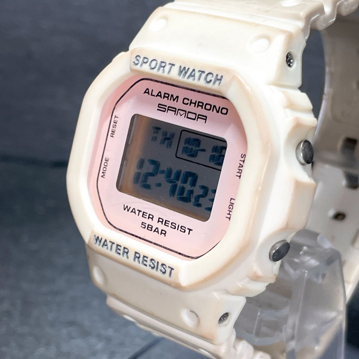 SAMOA 293 腕時計 デジタル クオーツ 多機能 カレンダー ピンク ラバーバンド ホワイト ステンレス 新品電池交換済み 動作確認済み