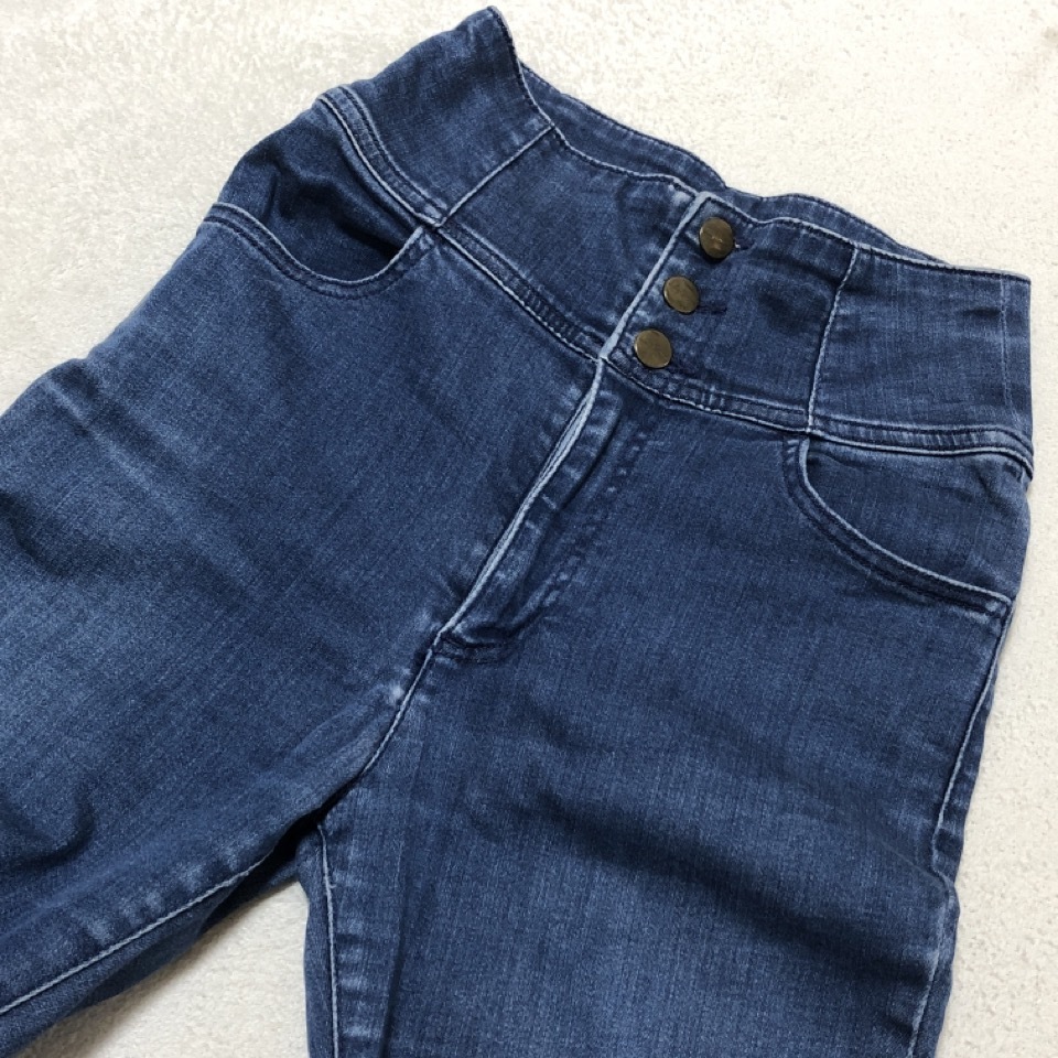 1円~ 60 A-4-78 Lily Brown リリーブラウン ハイウェスト スキニー デニム インディゴ サイズ0 コットン ストレッチ有