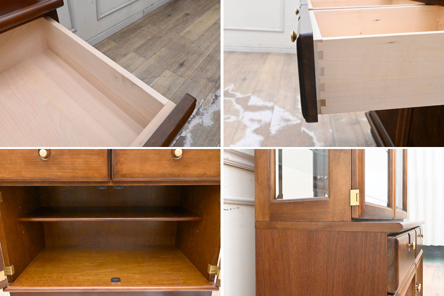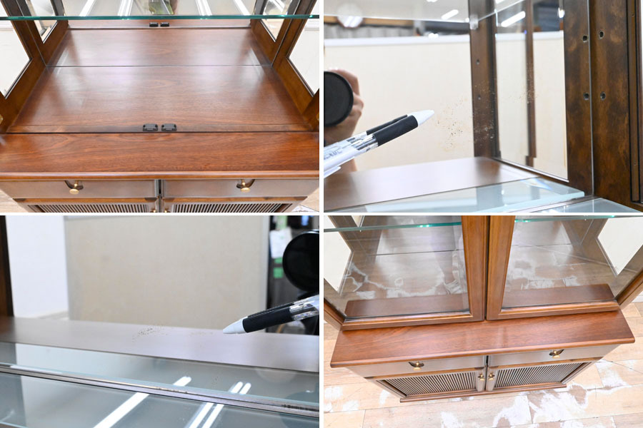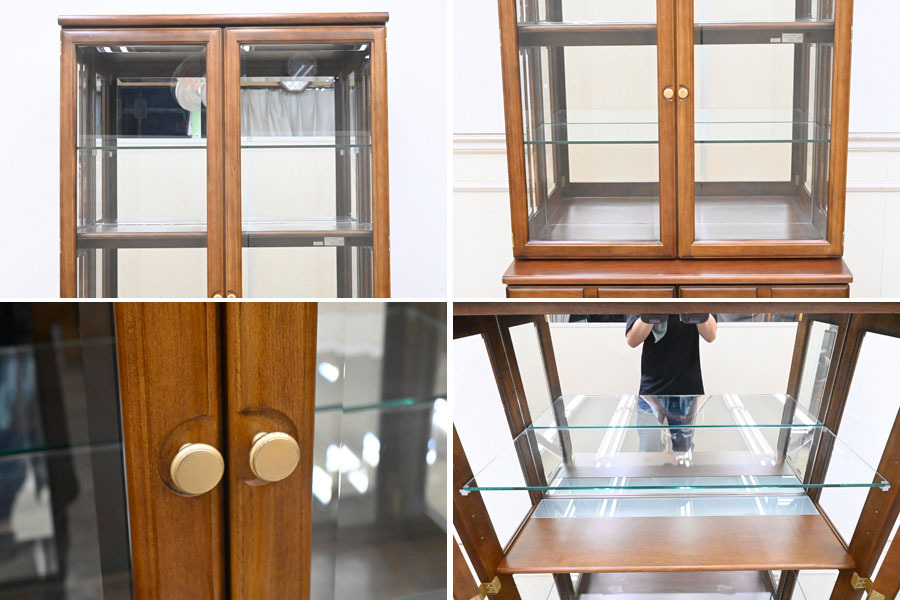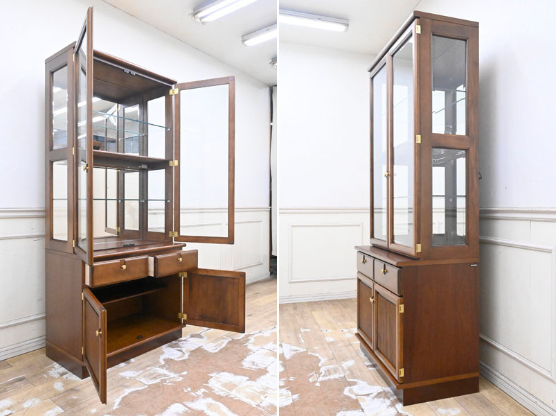 ----------------------------------------------------------------------------------------- ●送料や注意事項は必ずご確認下さい。落札後にトラブルになるケースが増えております。● ◆コンディションは写真・文章にて記載して有りますが、全てのキズの写真は掲載致しておりません。大きなダメージを除き見落とし、記載漏れが有る事はご了承下さい。 ◆当サイトにて出品する商品は多種多彩で、当方商品知識の無い物も多数ありますので落札後の質問やメンテナンス等にはお答えできません。 ◆入札された時点で、画像、文章をご理解していただいたものと判断させていただきます。不明な点は前もってQ&Aからお願い致します。入札後の質問やお電話等でのキャンセルは一切受け付け致しません。 ◆商品説明に「ノークレーム」と記載しているものに関しては、如何なる状況で届いても保証致しません。詳しくは注意事項の「商品到着後について」の最後に記載しておりますのでご確認下さい。 ---------------------------------------------------------------------------------------- 条件付き限定家財おまかせ便での発送となります。 運送事故補償の無い、限定条件での家財便発送となります。 こちらの方法で配送の商品は、運送事故による破損補償や動作不具合を含め、補償を一切出来かねますので、ご理解の上ご利用下さい。注意事項に記載の補償も適応外です。 家財おまかせ便は前提として、この手の商品は荷受け不可商品です。一切の保証無しという条件で荷受けして頂いております。破損した際に、初めから破損していた、梱包方法が悪い、運送方法が悪い等クレーム言われる方おられますが、上記内容が受け入れられない場合は、お客様で業者を手配頂けると幸いです。 日本を代表する高級家具メーカー、カリモクの飾り棚、中古超美品の出品です。 同じものがもう1つあります(別売り)。全オーナーは並べて使っていました。 2台並べてお使い頂ければ、雰囲気は更に増すでしょう。 幅89 奥45.5 高192 下段高68cm 【コンディション】 中古品ですので多少のキズ、多少の汚れ、取っ手クスミ、鏡内側変色?、カリモクシール近く角にヘコミ、扉フレーム下部ダコン等有りますが超美品と言える奇麗なお品です。 | ||