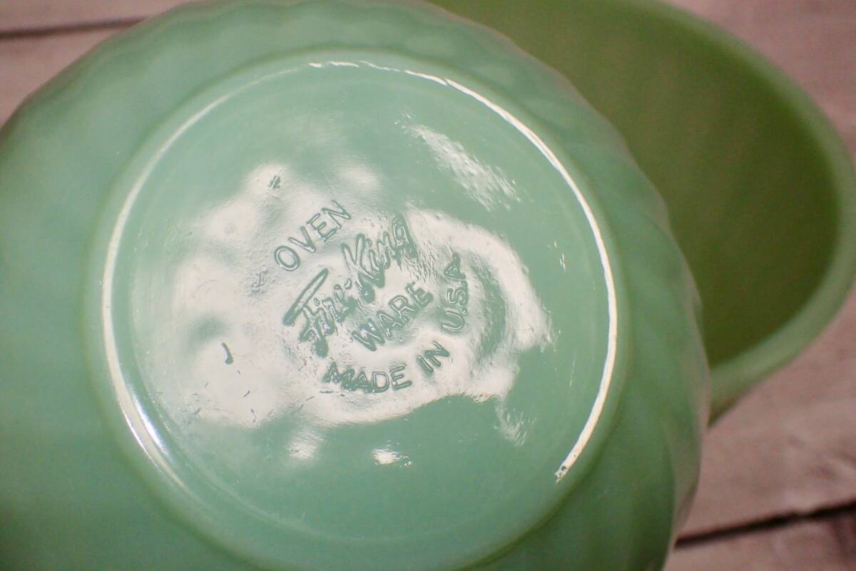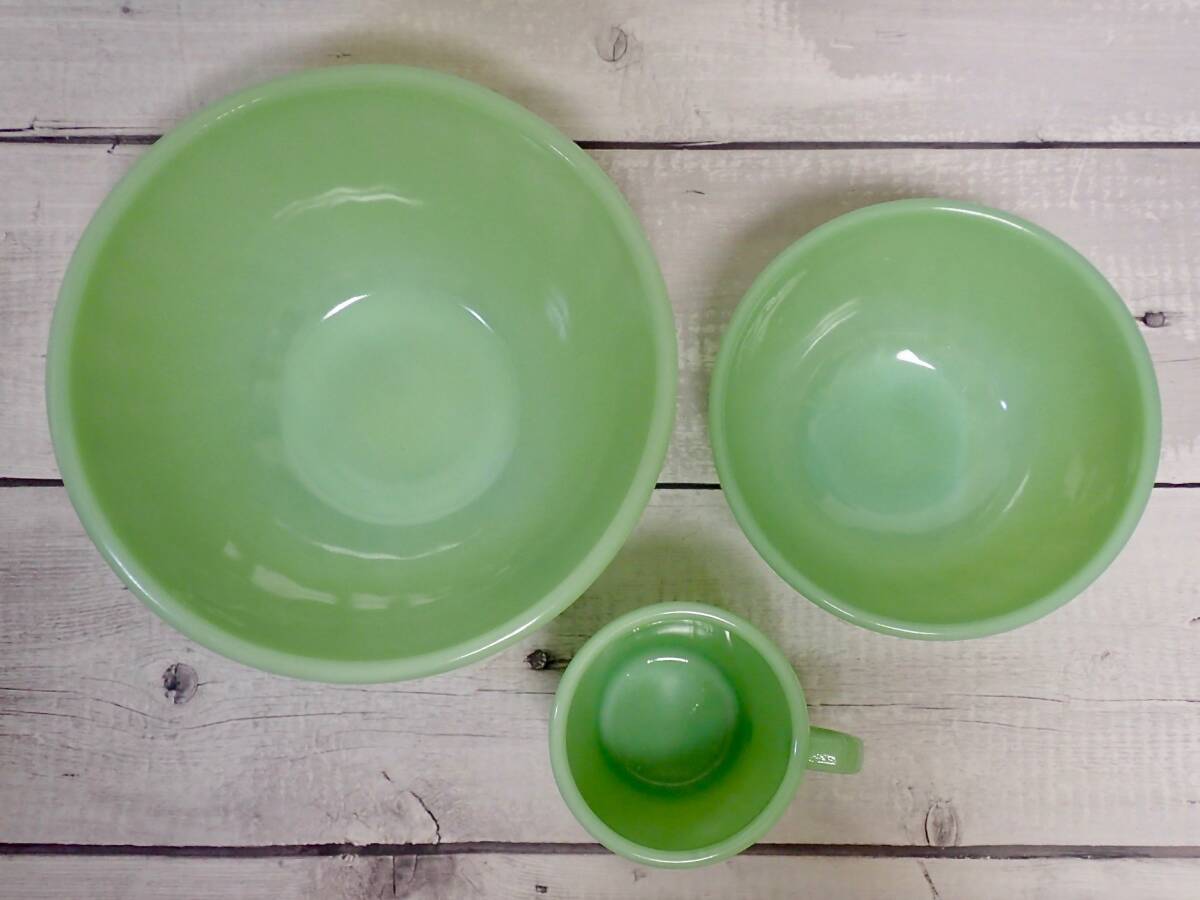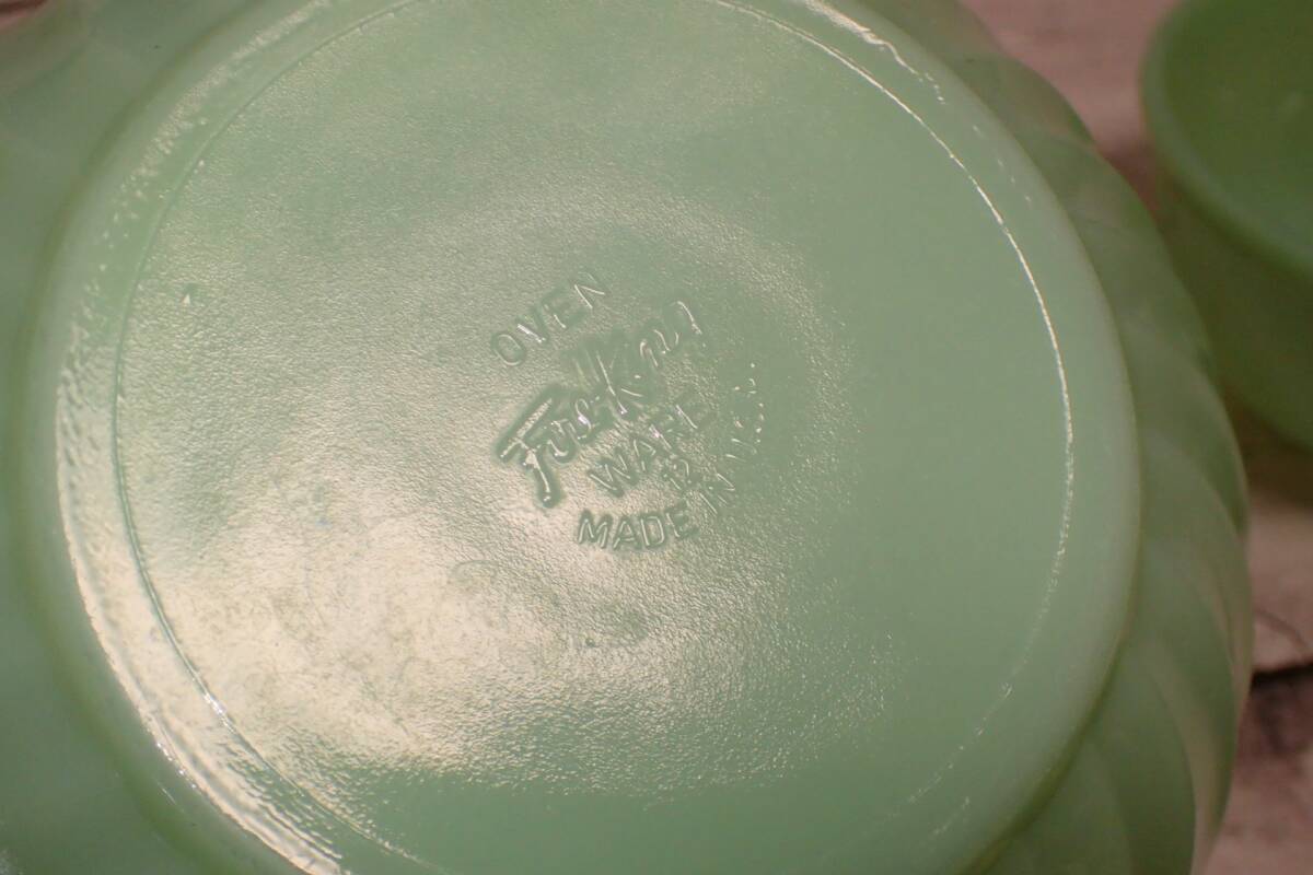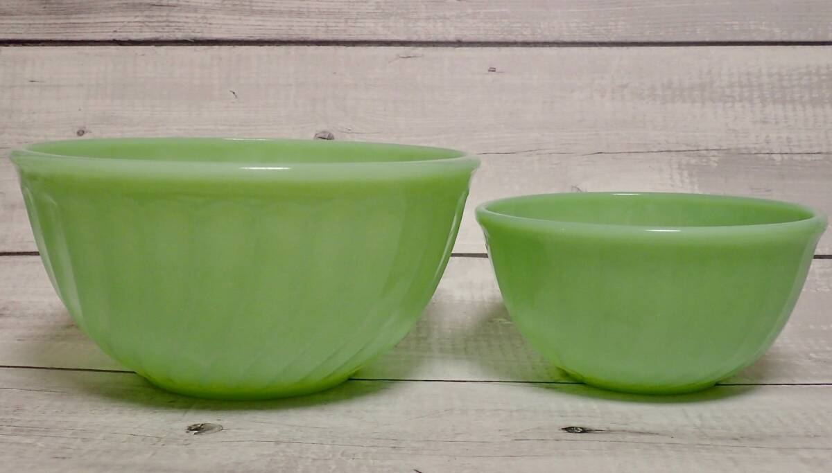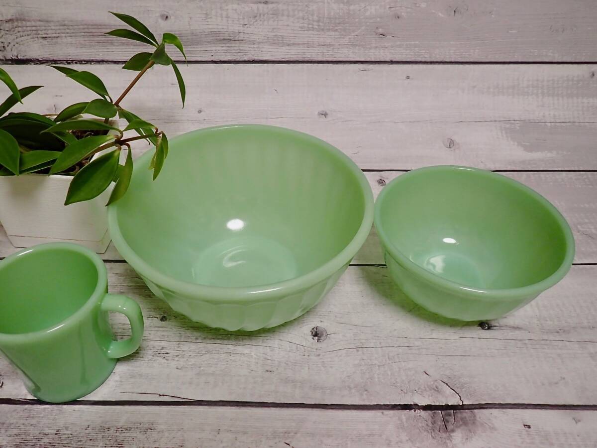 ファイヤーキング・ミキシングボウル(スワール)S + M の2個セット・ジェイド(艶あり・欠け無し・良品)