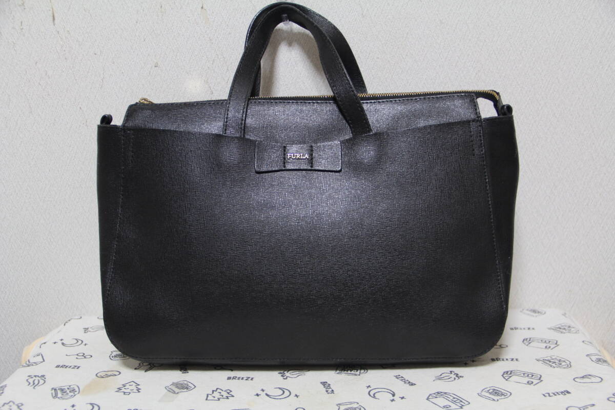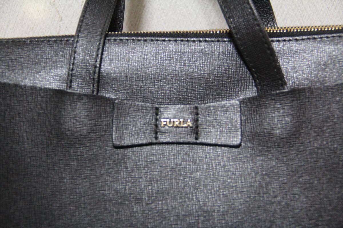 美品、FURLA,  フルラ ハンドバッグ、ブラック系レザー、ブラック、おでかけおしゃれかばん、レデイース;
