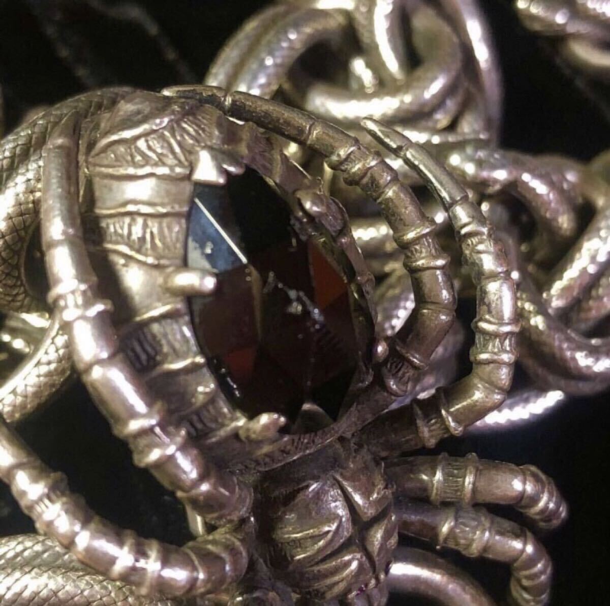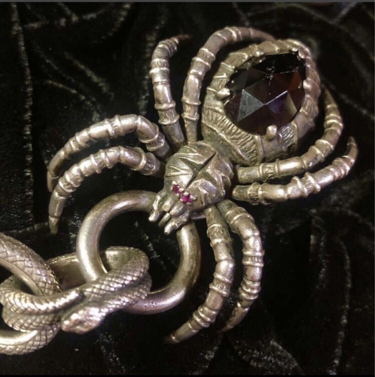 スパイダーフックの目にルビーと胴体にオニキスがはめ込んであります。