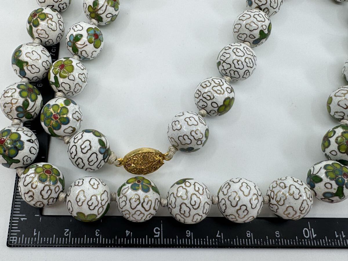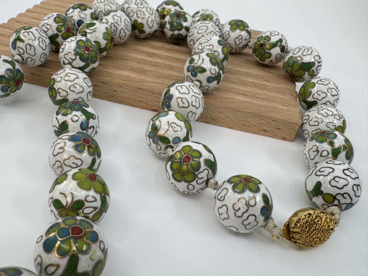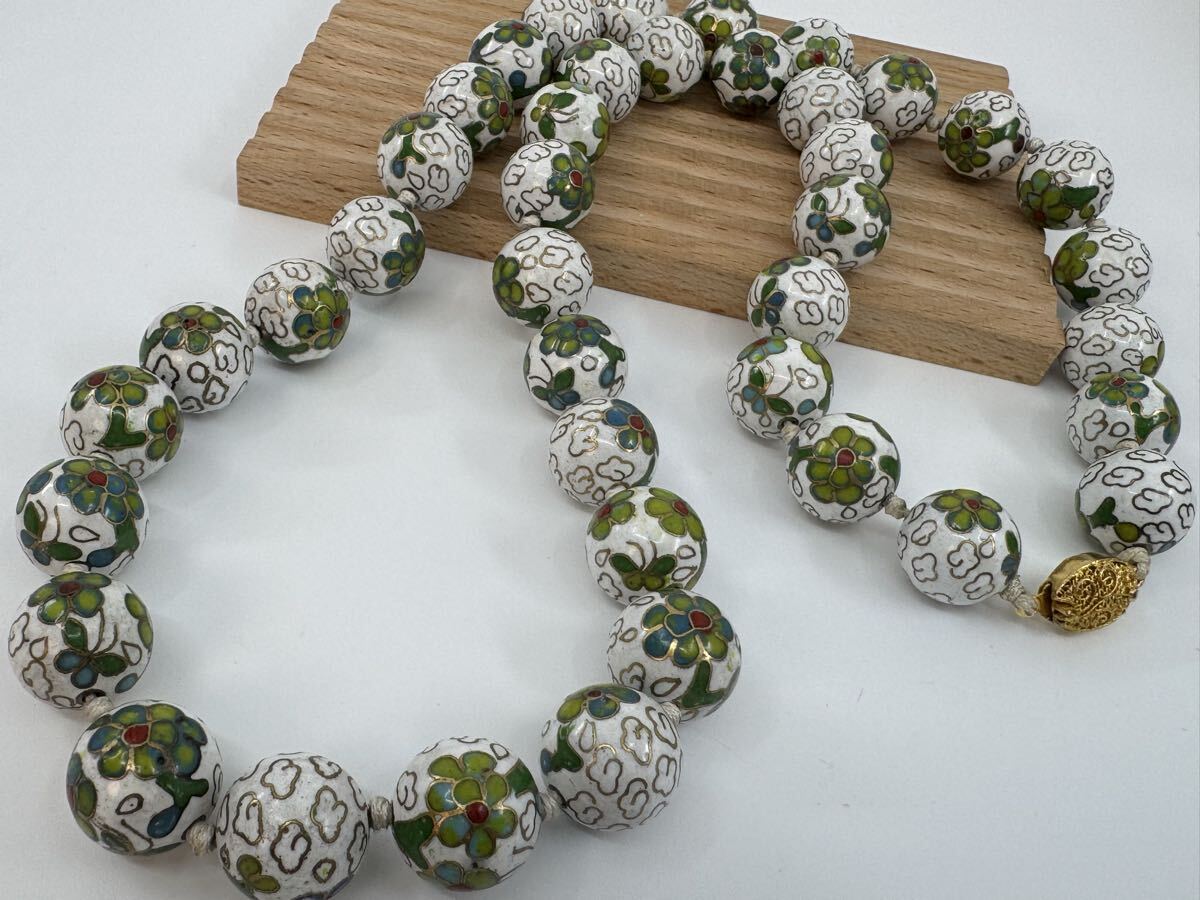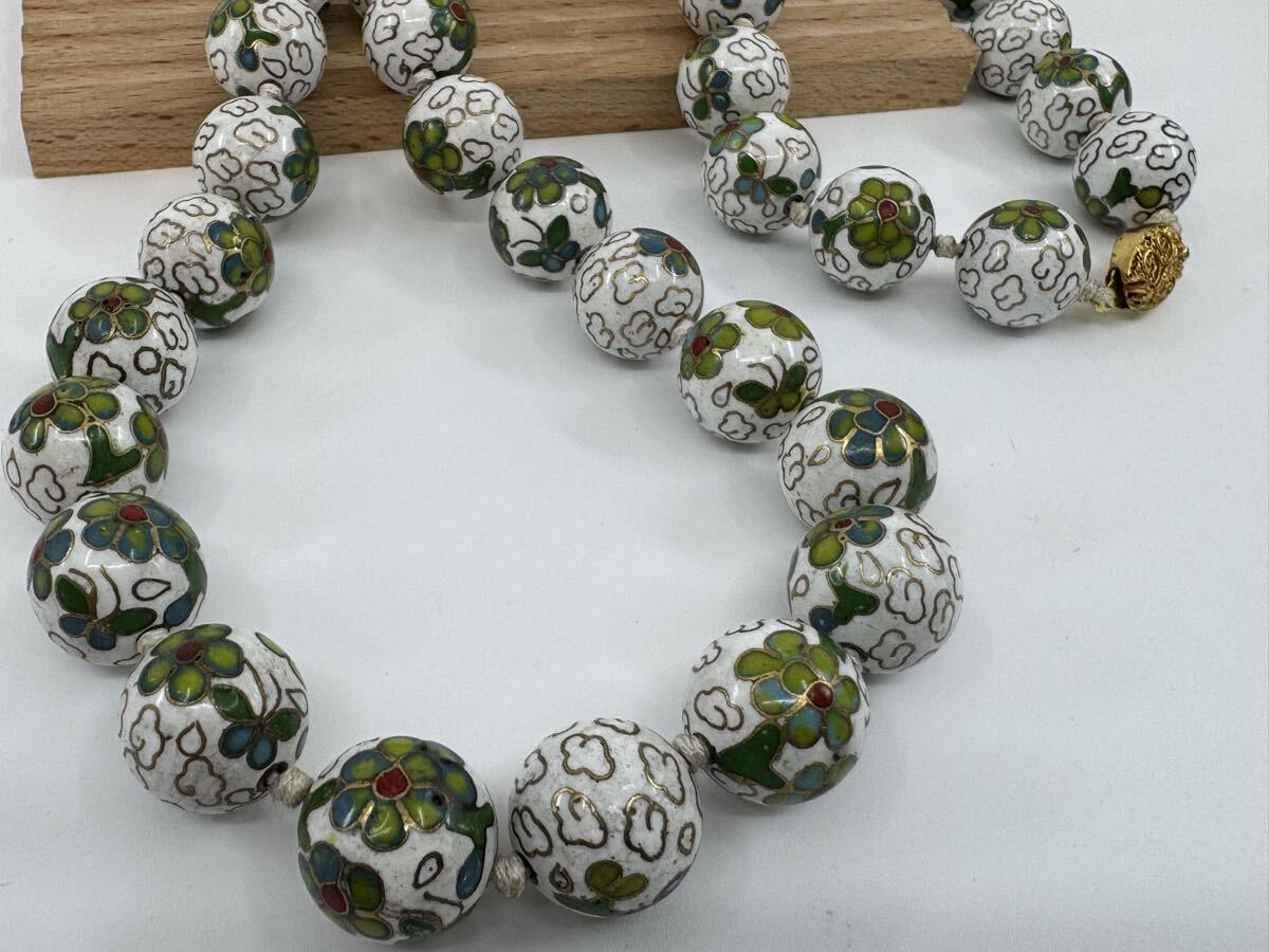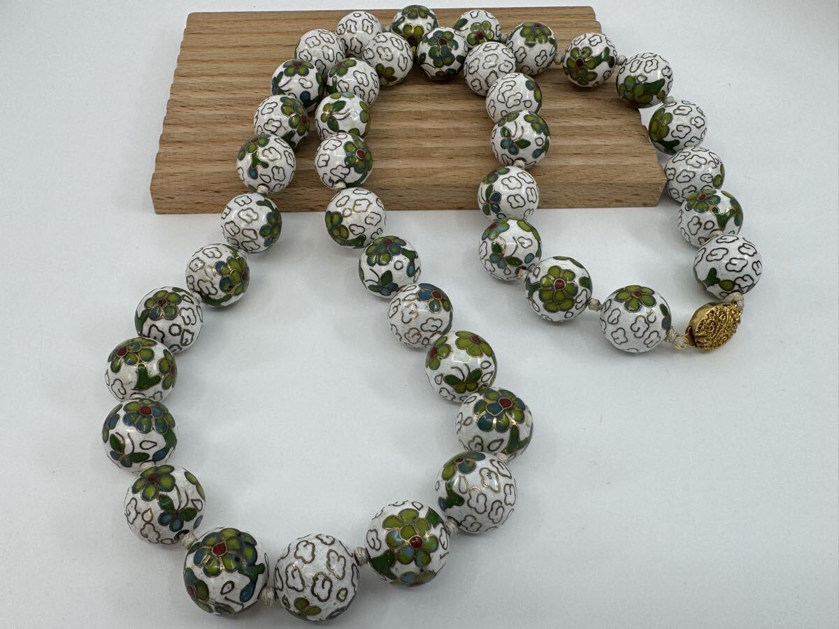【0417】七宝焼 焼き物 ネックレス 68cm 160g ヴィンテージ アクセサリー