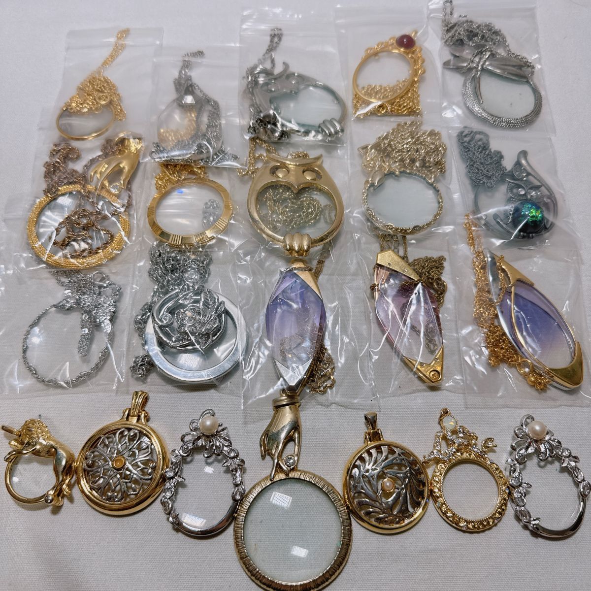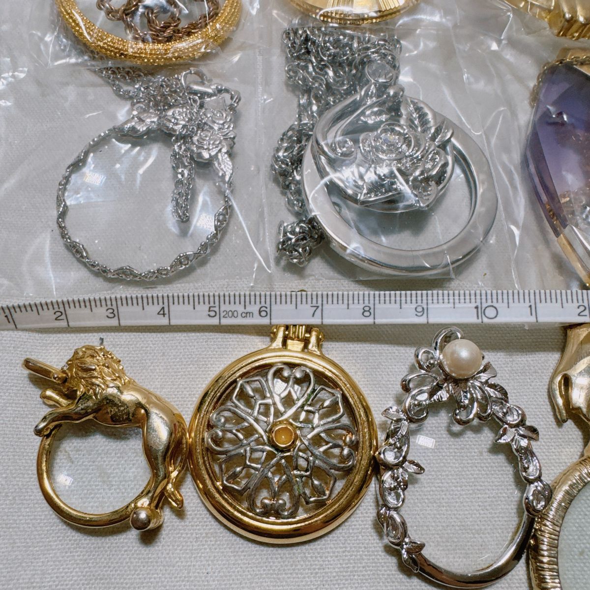 EB ルーペ 拡大鏡 シルバー ゴールドカラー ネックレス ペンダントネックレス 22点 まとめ 約600g パール ラインストーン 等