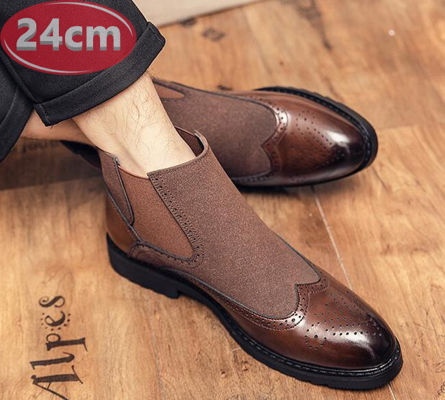 サイドゴア メンズ ビジネス レザー シューズ ブラウン 24.0㎝ 革靴 靴 カジュアル 屈曲性 通勤 軽量 インポート品【n152】