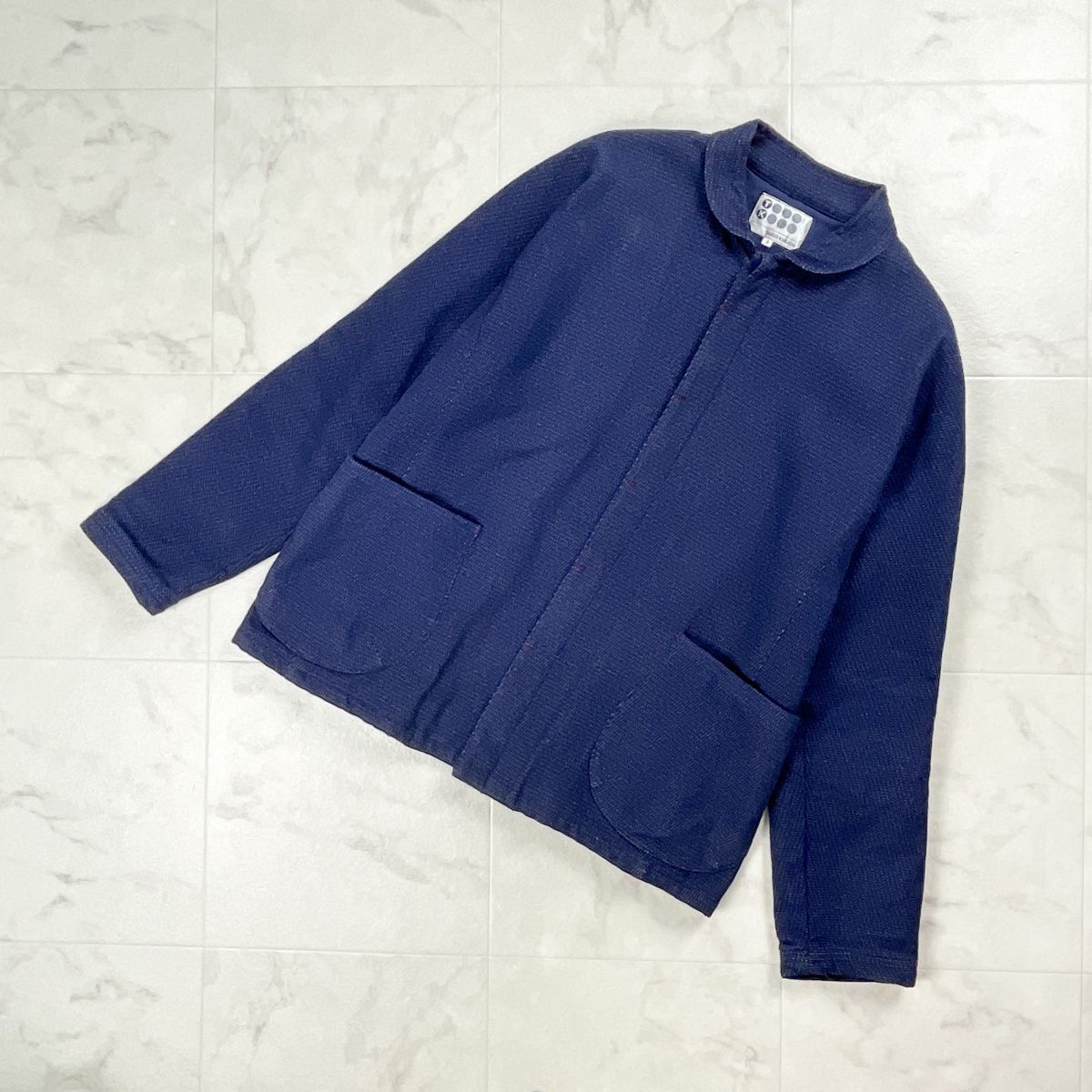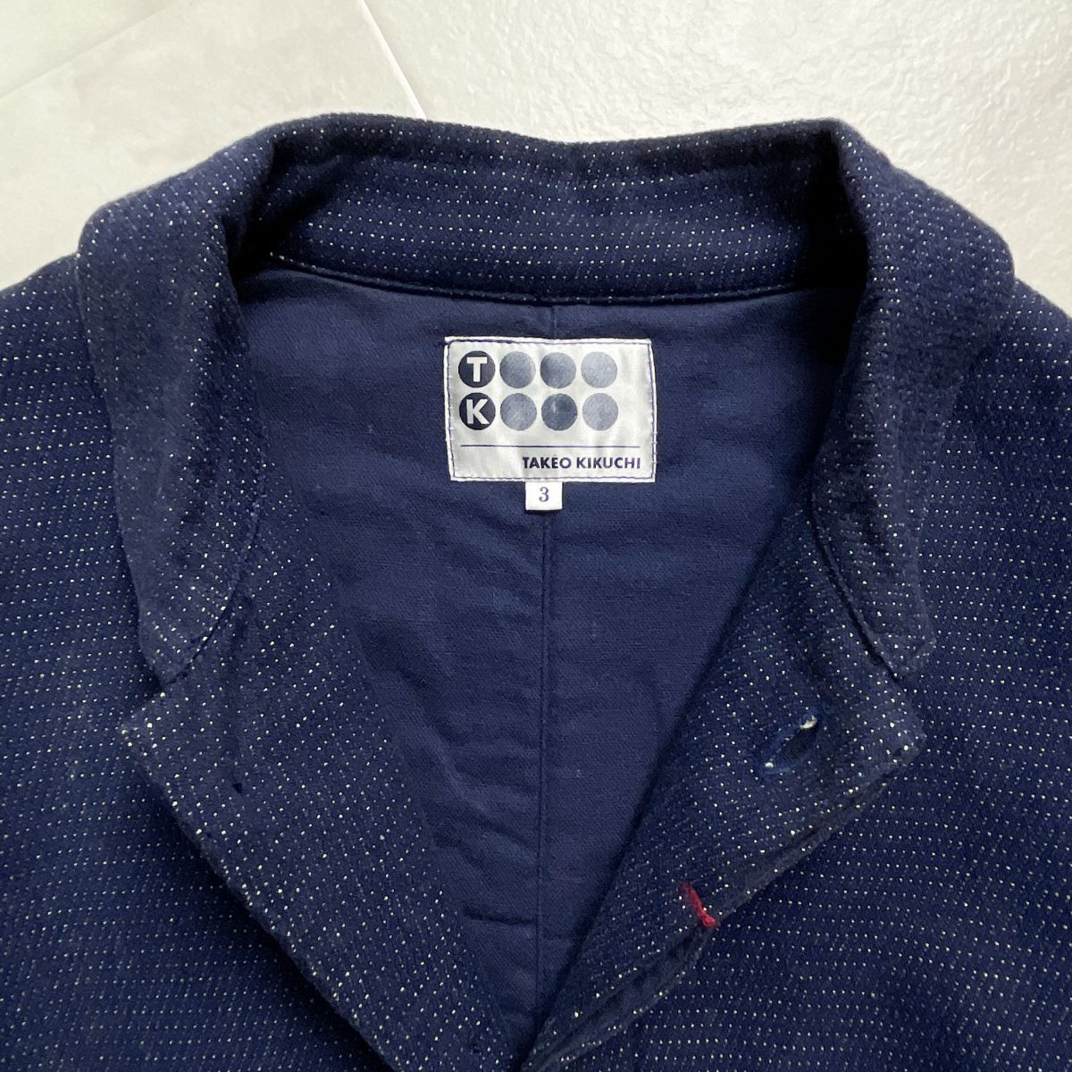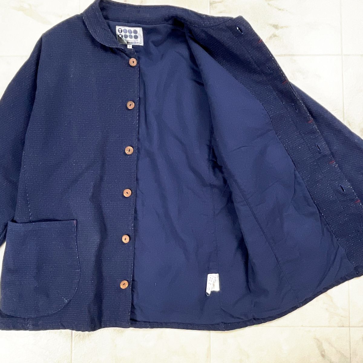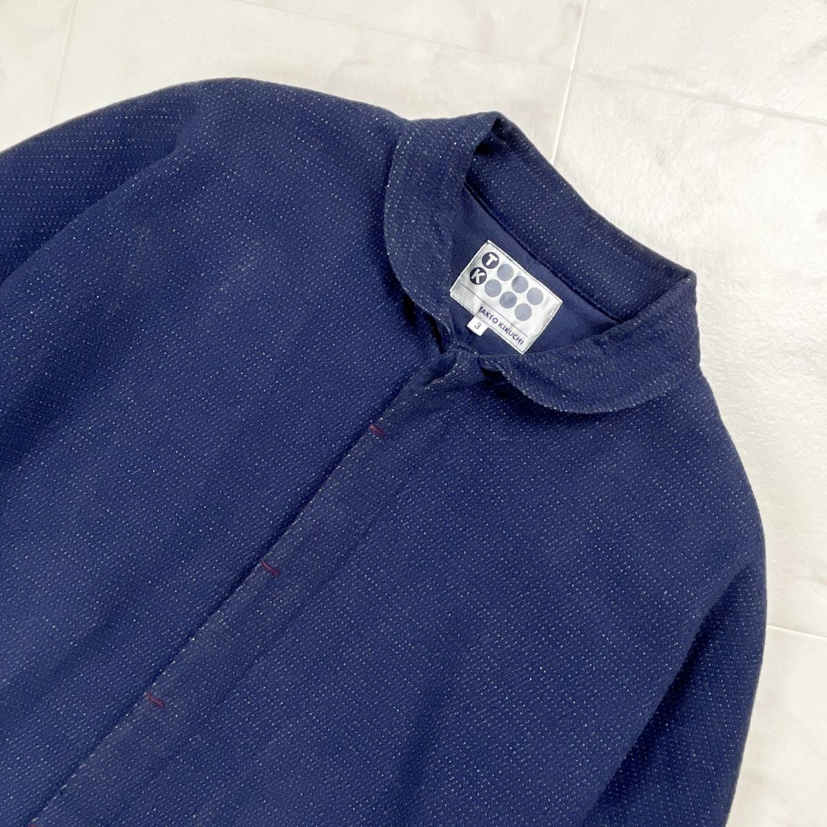 美品 TAKEO KIKUCHI タケオキクチ 刺し子風丸襟中綿ジャケット コート アウター メンズ ネイビー 紺 サイズ3*JD852