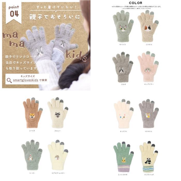 | 商品説明 | ・・動物の刺繍がかわいい!もふもふスマホ手袋。 ・親指、人差し指、中指にスマホ対応加工が施されていて、着けたまま、スマホなどのタッチパネルの操作が可能。 ・寒い冬、通勤や通学時など色々なシーンで手袋を外さずにつかえるのが嬉しい♪ ・もふもふっとした、とっても気持ち良い肌触り。 ・ほどよいフィット感で脱げにくいのもうれしいポイント。 ・親子で素敵にリンクコーデもできちゃう!キッズサイズとお揃いで使うのもおすすめ♪(※本商品ページでは、レディースフリーサイズのみの販売となります。スマホ手袋キッズサイズ[商品コード:smartgloveskids]は別商品ページにてお買い求めいただけます。) |