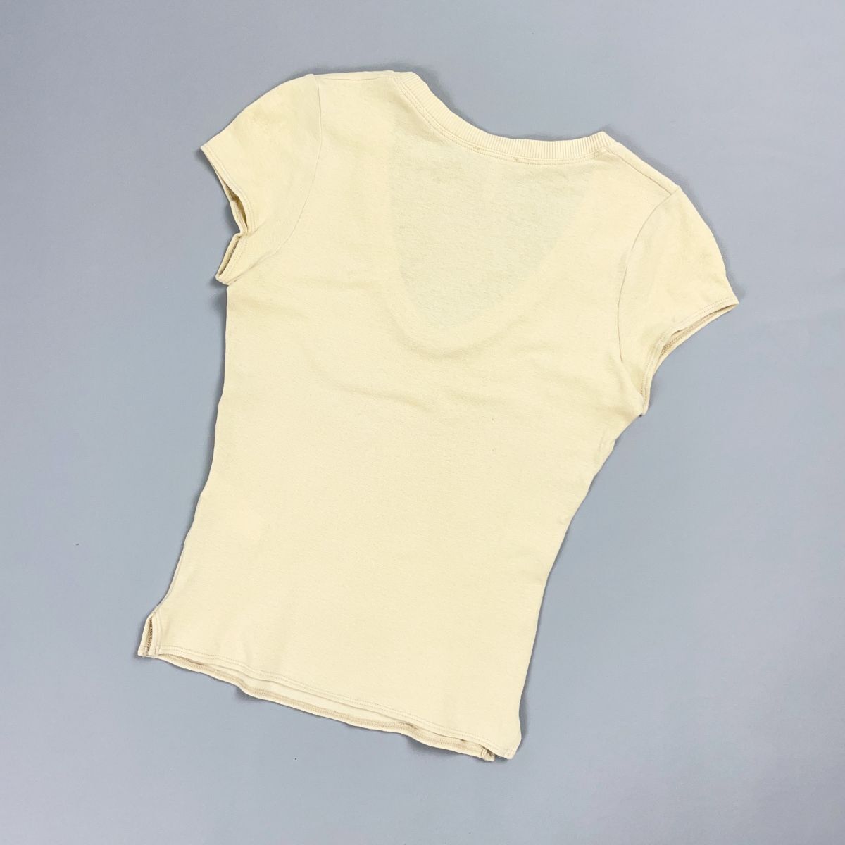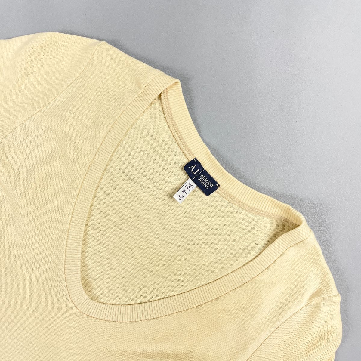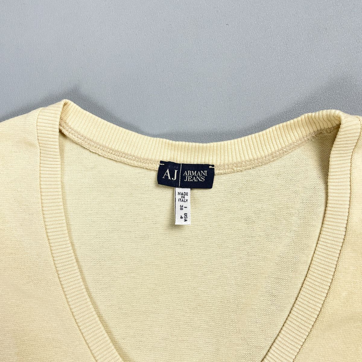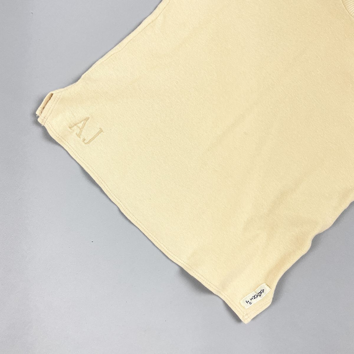 美品 ARMANI JEANS アルマーニジーンス Uネック半袖ニットTシャツ コットンセーター レディース ベージュ サイズ38*HD132