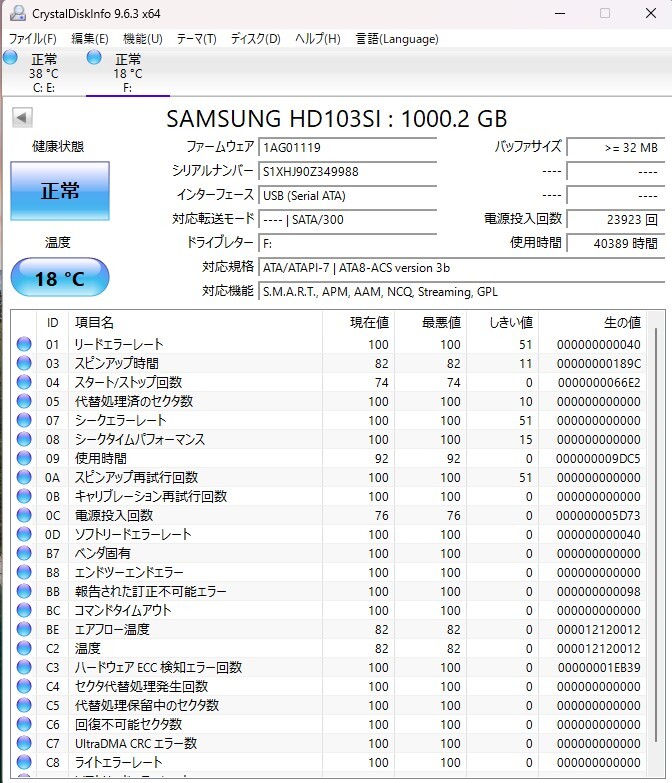注:上記の確認を元に正常品とみなしています。 crystaldiskinfo以外での判定基準、相性問題で動作しない場合,使用用途に適さないといった場合での返品、返金には応じられません。